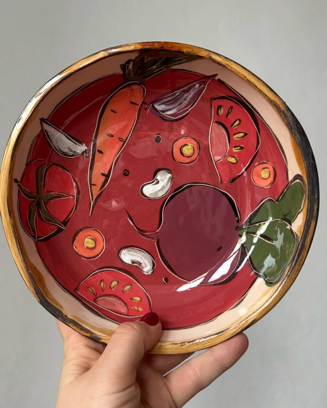 У відео я розповіла, що ми все робимо власноруч: використовуємо українську глину, самі створюємо макети, я розписую кожну тарілку. Я малюю так, як відчуваю на той момент. Тому один борщ відрізняється від іншого — і в цьому його цінність. Це такий невеликий ролик-знайомство, візитівка про мене й майстерню. Саме його я й хочу запустити в рекламу.