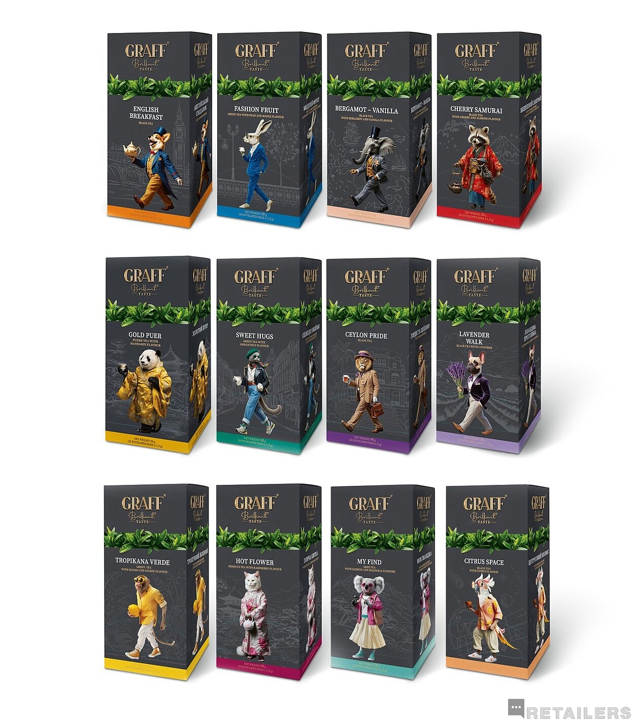 Дизайн пакування Graff та реклами з використанням стильних маскотів-тварин розробляла студія CupSoul.