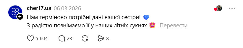 На цей допис відгукнулися представники бренду Cher’17. Вони написали, що їм терміново потрібні контакти дівчини — бренд хотів би зняти її для колекції літніх суконь.