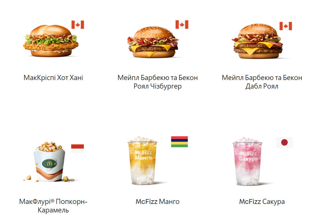 У меню McDonald's по всій Україні доступні страви з Канади, Японії, Кіпру та інших країн.