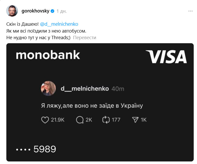 Ситуація, яку описала Дар'я, сильно зачепила українців, зокрема співзасновника Monobank Олега Гороховського.