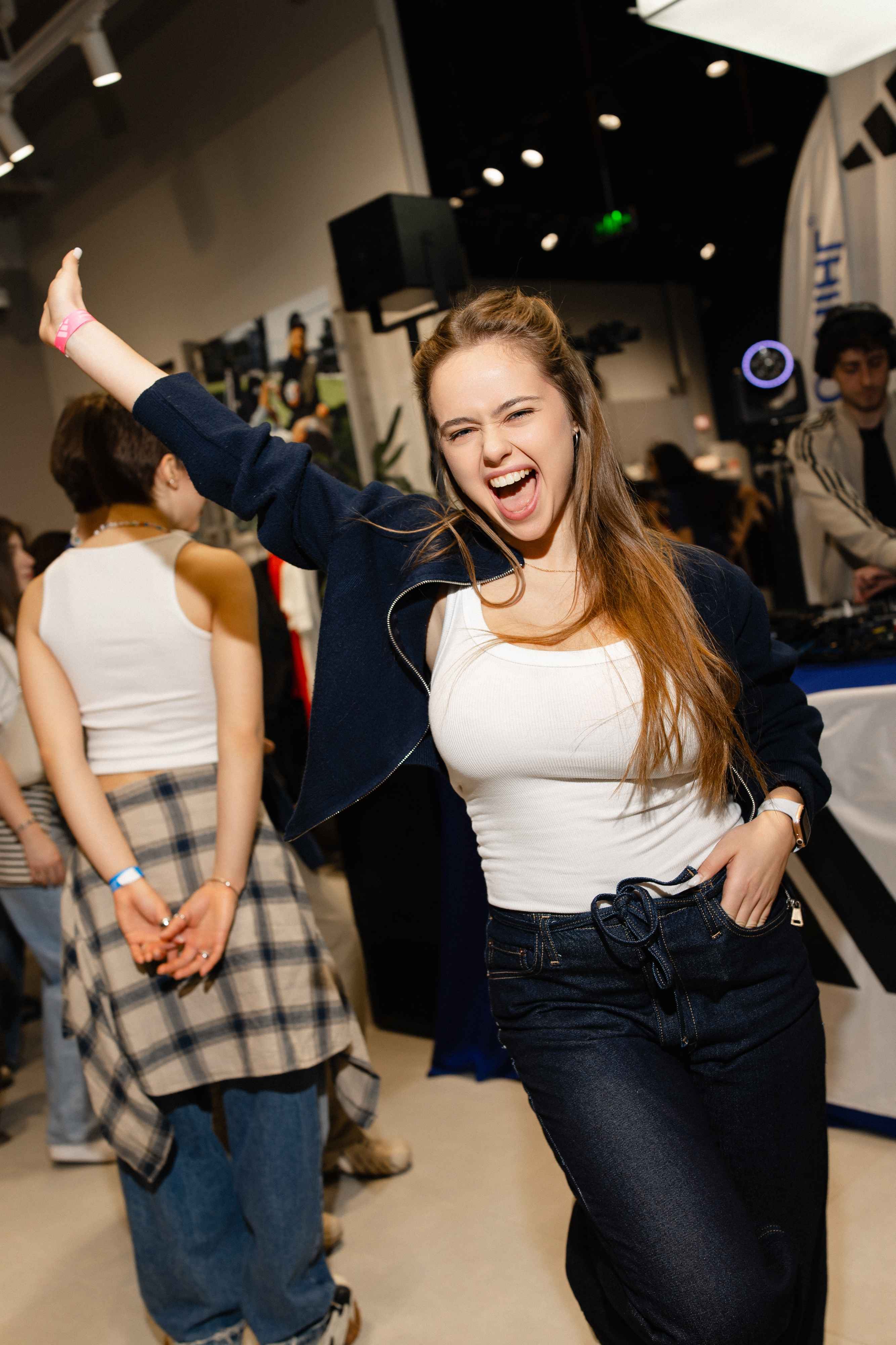 Подія припала на Міжнародний день діджея. У лайнапі чотири артисти: AIDENTIQUE, Johnny Egoist, Amid Namguv, b2b Valmaind. Під уривки з пісні "The Power" німецького євроденс-гурту "Snap" частина учасників танцює майже в самій білизні. Біля купи курток і рюкзаків доросла пані міряє рожеві кросівки в тон до своєї футболки з величезним написом adidas.