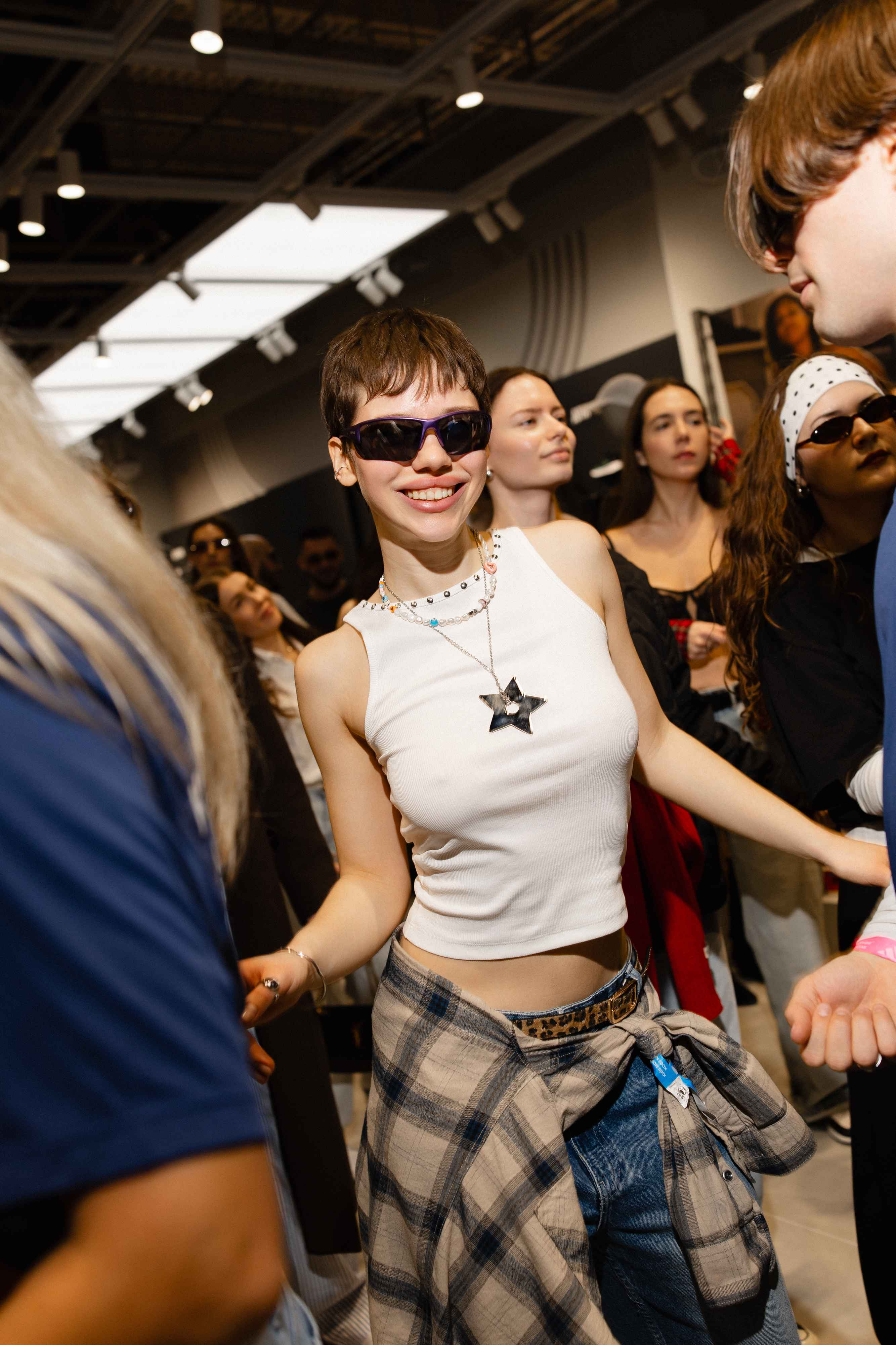Перед ним близько 50-ти людей. Розбиті по невеличким компаніям, активно обмінюються новинами. В натовп вривається коротко стрижена дівчина у фіолетових окулярах і чокері з квітками та зіркою Dior на грудях. За 10 хвилин обіймає майже кожного відвідувача.