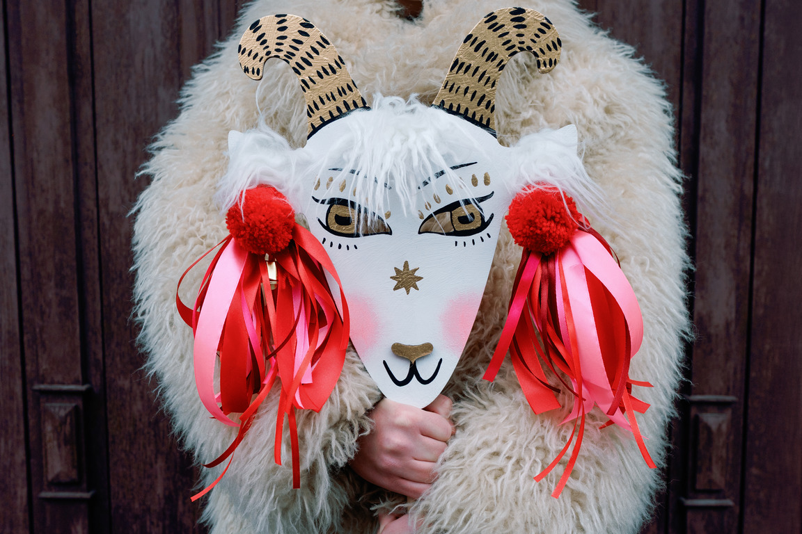 У колекції також є маски — "Кізонька" з помпонами, "Козлик" з бородою та "Дідо". Вони натхненні давньою традицією маланкування та водіння кози. важливою частиною свята є перевдягання «переберія»— не просто розвага, а обряд перевтілення, що приносить у дім добро, сміх і новий рік.