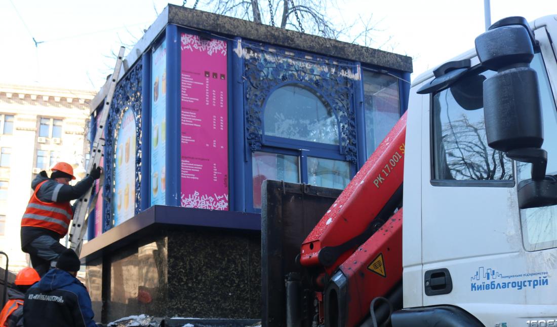 На Хрещатику вже прибрали 27 споруд: 23 об’єкти – силами комунального підприємства, 4 — власники вивезли самостійно. На Майдані Незалежності прибрали 6 тимчасових споруд, найбільша з яких — павільйон площею 40 кв. метрів.