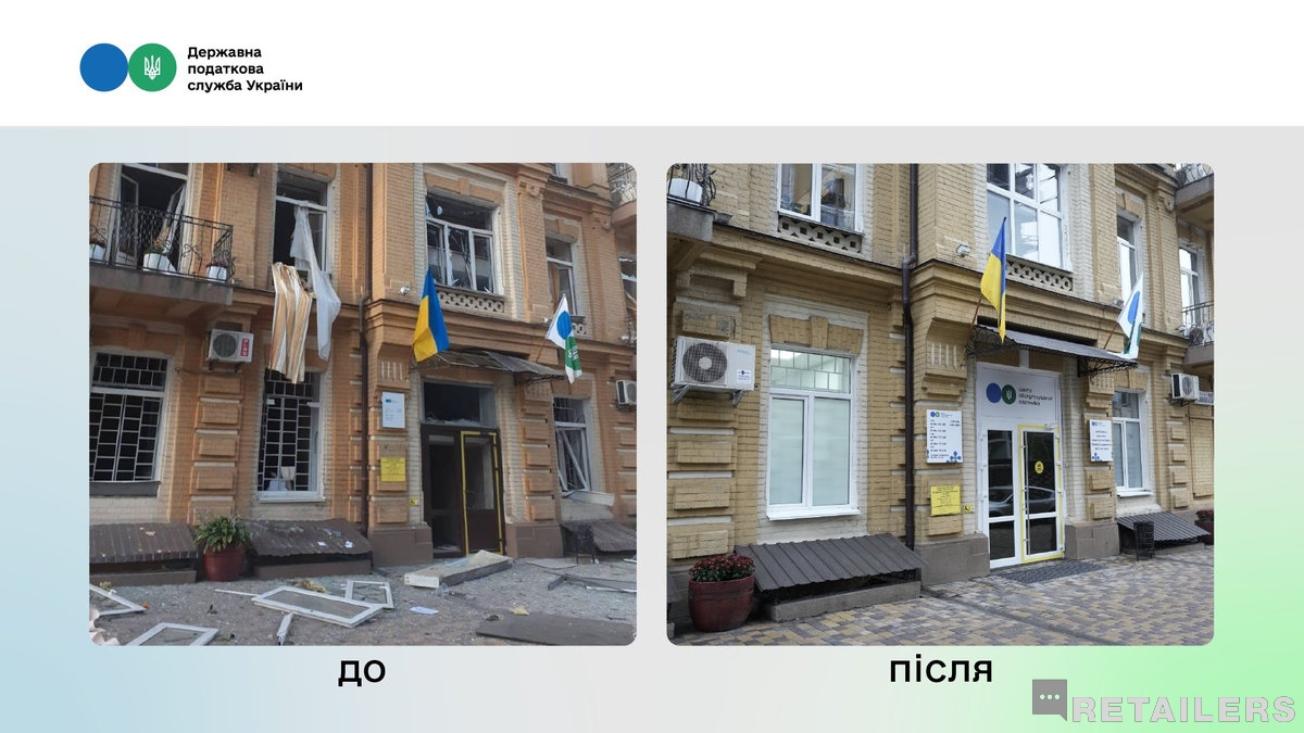 Центр обслуговування платників на вулиці Жилянській, 23а в Києві відновив роботу. Наприкінці серпня цього року він був пошкоджений під час масованого ворожого обстрілу. Про це повідомила в.о. голови Державної податкової служби України Леся Карнаух.
