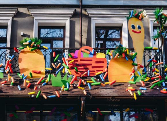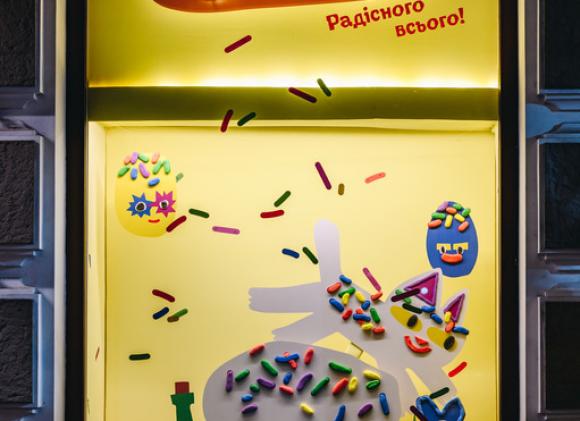 Мережа "Сільпо" притрусила вітрини супермаркетів у Дніпрі й Одесі до Великодня посипкою "Радість", щоб було кольорово, святково і хотілося з ними сфотографуватися, а може й лизнути. Про це повідомляє пресслужба компанії