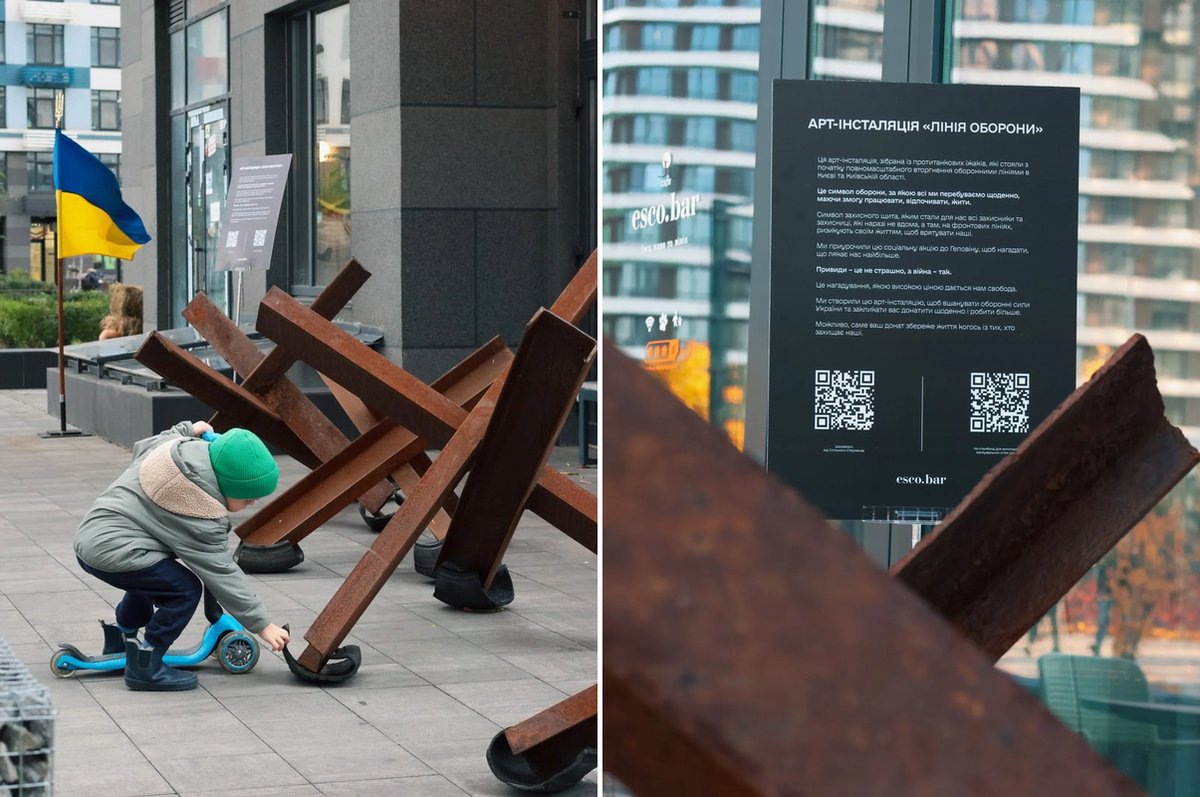 Мережа Escobar створила серію інсталяцій "Лінії оборони" з протитанкових їжаків