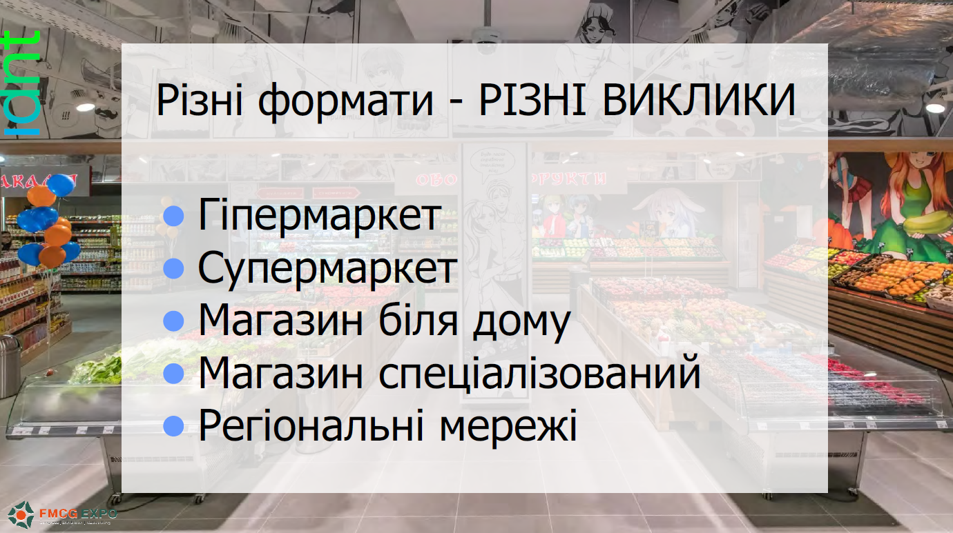 Великі формати (гіпермаркети) мають свою специфіку та проблематику. Вони не розвиваються так активно, як інші формати. Хоча, на мою думку, це досить недооцінений сегмент.