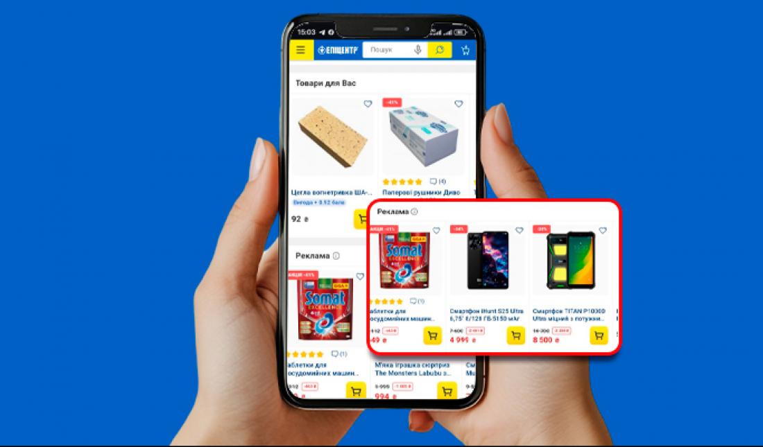 Внутрішній рекламний сервіс Epicentr Ads дозволяє партнерам компанії просувати свої товари безпосередньо в межах онлайн-платформи epicentrk.ua