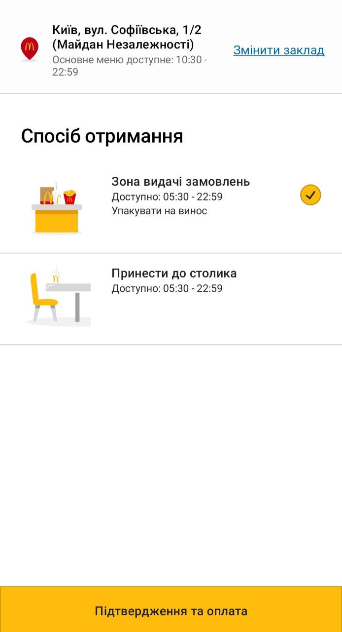 Я живу в районі НАУ, тому обрала McDonald’s біля Майдану Незалежності. І, як виявилося, недарма щось підказувало, що не варто оформлювати замовлення ще вдома. Інтуїція мене вкотре не підвела!