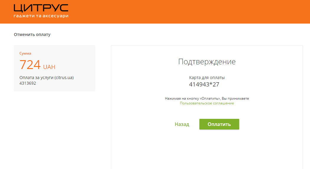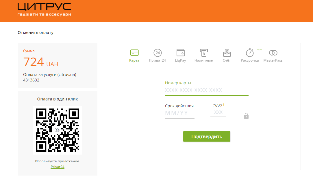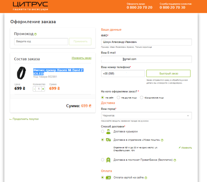 Теперь уже появилась возможность оплатить картой. Мне нужно оплатить стоимость устройства 699 грн и доставку 25 грн. Очень радует невысокая стоимость доставки.
