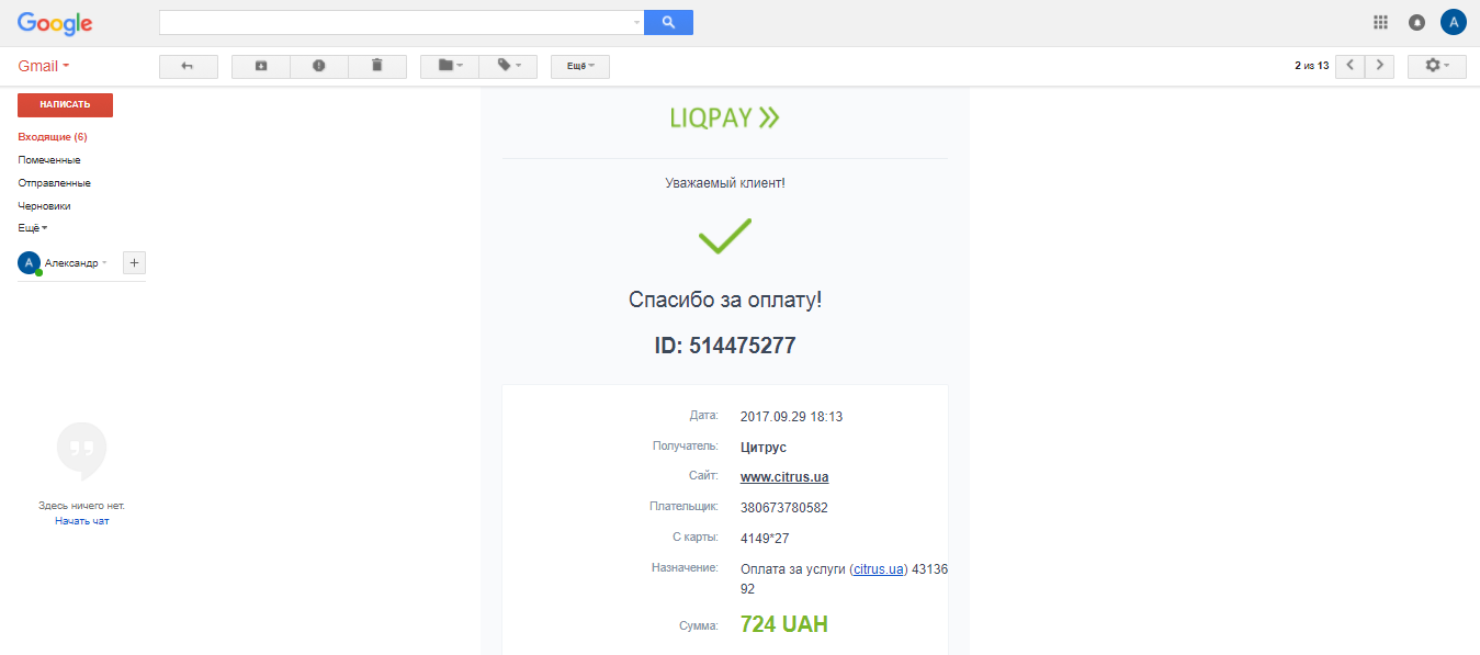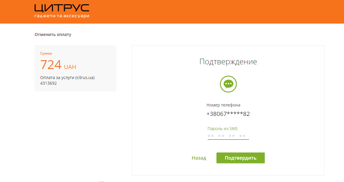 Оплата прошла очень быстро. Буквально минута — и я получаю СМС с подтверждением оплаты.