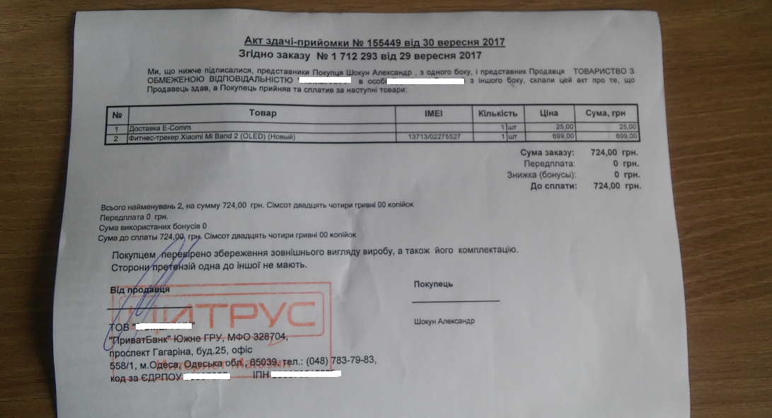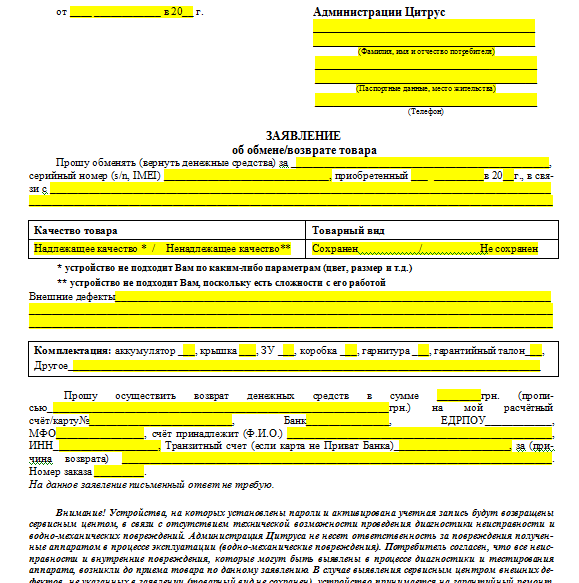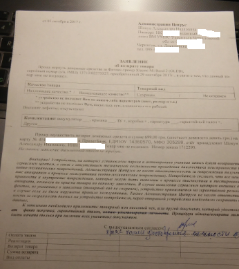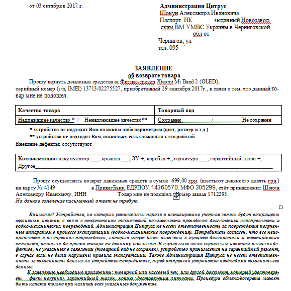 Хорошо, что у меня дома есть принтер, и я могу быстро распечатать заявление, но если у человека нет принтера, то для него возврат товара превращается в дополнительные движения и перемещения. Я подписываю заявление и отправляю на проверку с оговоркой, что не предоставляю копии документов, удостоверяющих личность, поскольку украинское законодательство не требует их.