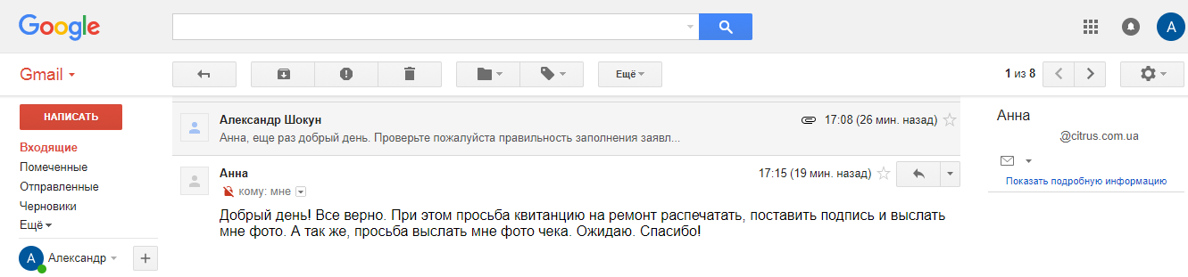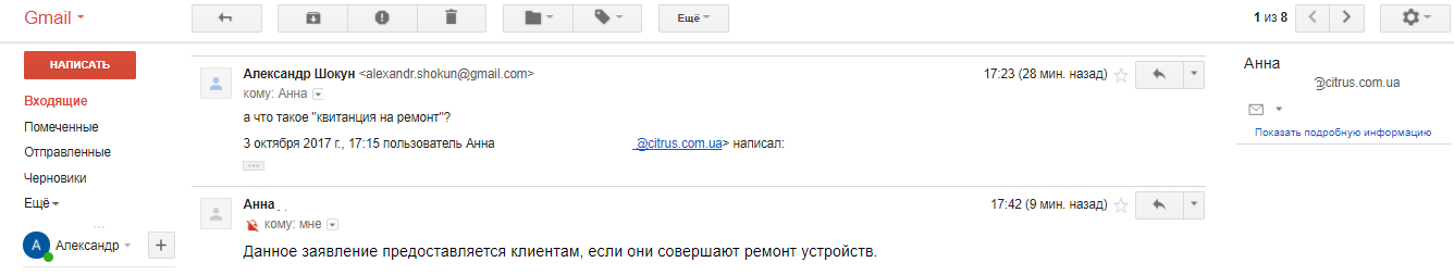 Что приятно, ответы на письма приходят буквально в течение нескольких минут.