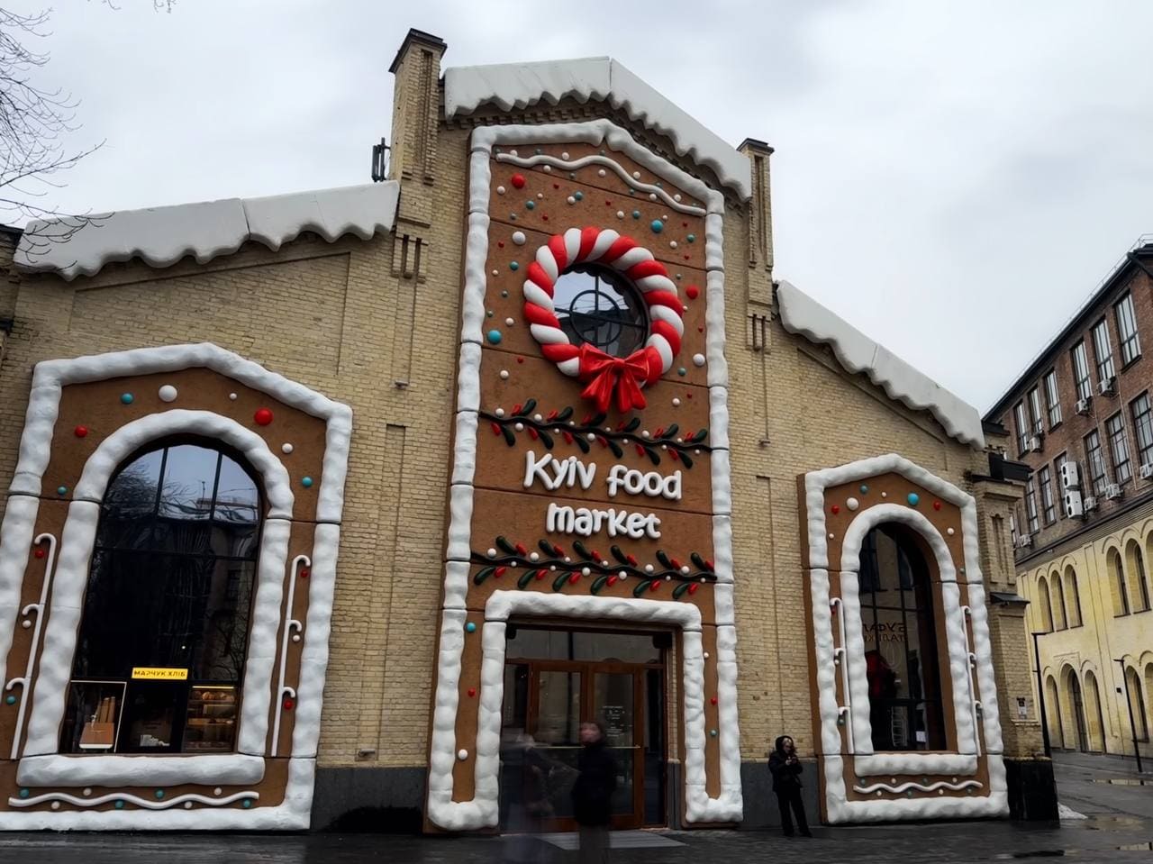До зимового сезону простір доповнили святковим новорічним декором, а фасад будівлі, як і торік, оформили у стилі пряничного будиночка.