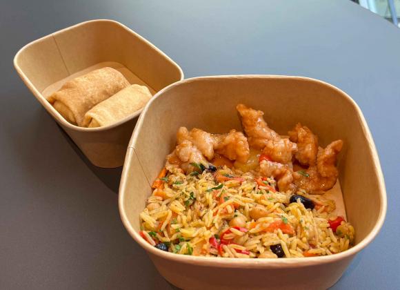 До речі, їжу тут подають не на тарілках, а за замовчуванням у картонних контейнерах. Один коштує 12 грн. Хоча б не довелося платити за одноразові столові прибори — і те добре.