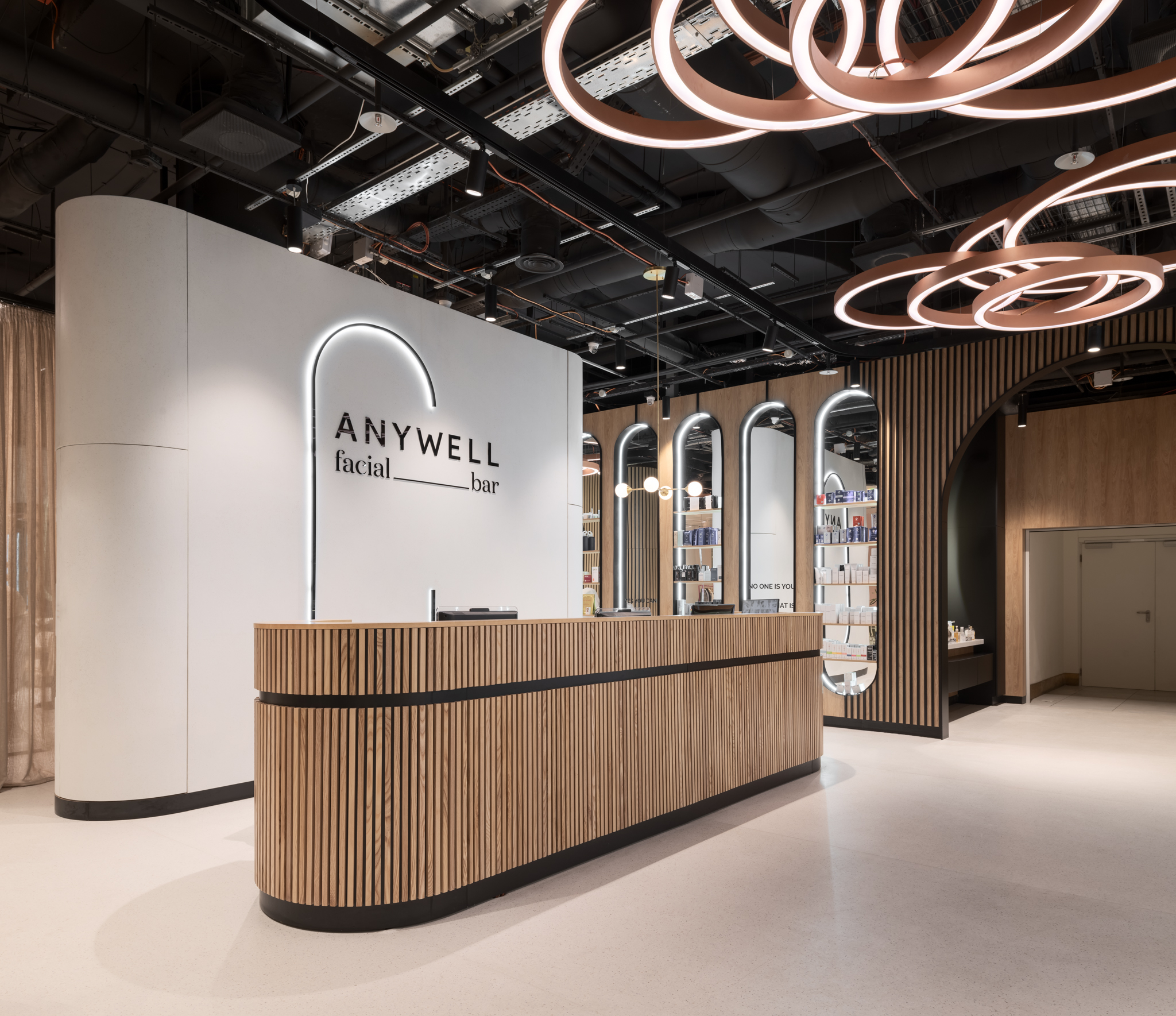 Anywell Facial Bar – бьюти-пространство, для которого AVG Group разработала и реализовала дизайн интерьера.