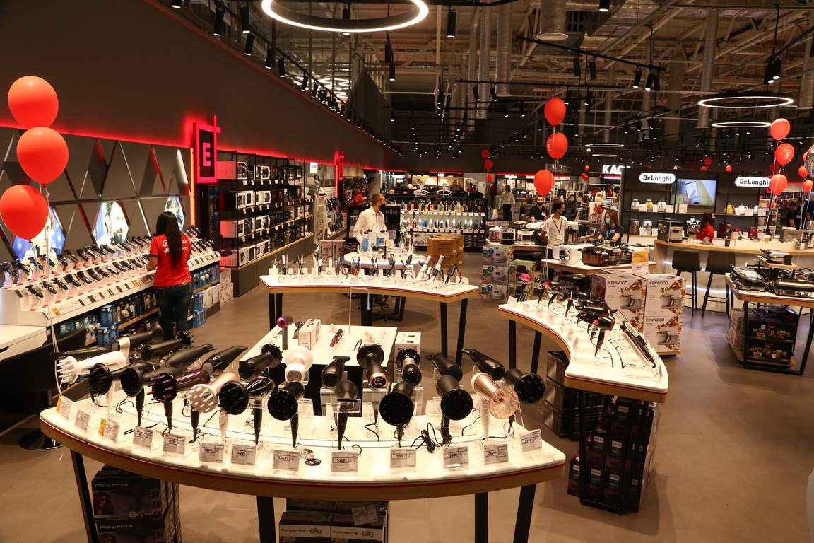 ELDORADO в Lavina Mall открылся после редизайна в 2020 году. Его площадь составляет 1212 кв.м, а в ассортименте представлено более 4000 SKU. В магазине используется продуманное освещение,сосредоточенное на товаре: используются светильники разных типов: линейные, направленного света, дизайнерские фигурные, с различным углом раскрытия линзы.