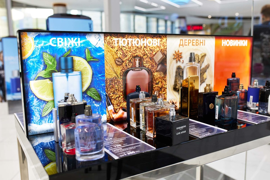 Также в новом магазине будет представлен стенд для самостоятельного выбора ароматов, где парфюмерия сегментирована не по брендам, а в рамках более понятных и привычных характеристик (свежий, древесный, сладкий аромат).