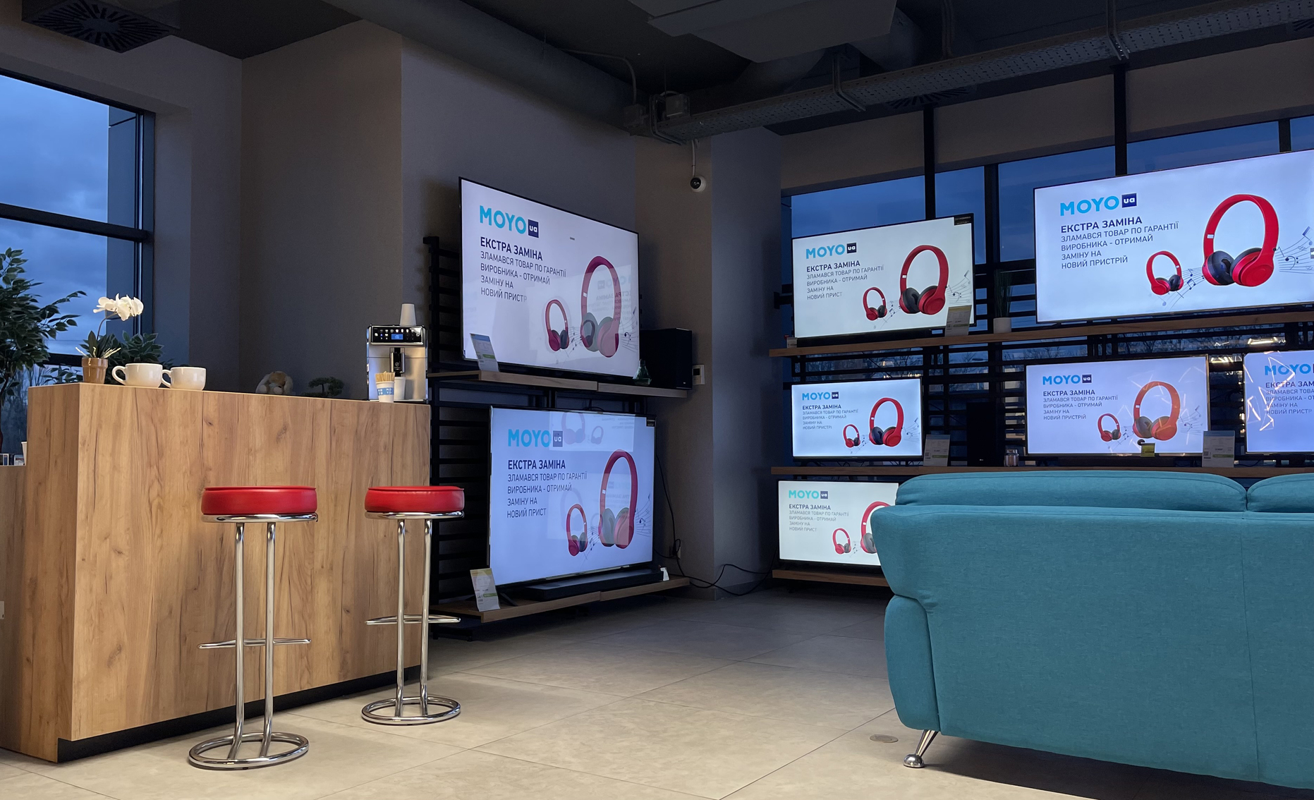Мерчандайзинг в каждой зоне позволяет ознакомиться с основными товарами ведущих брендов. Ценники с QR-кодами переводят на ссылку с подробным описанием товаров. Омникальный шопинг в MOYO 24/7 — это возможность сравнивать товары вживую и на сайте moyo.ua и делать оптимальный выбор. На всех девайсах осуществляется централизованное управление контентом.