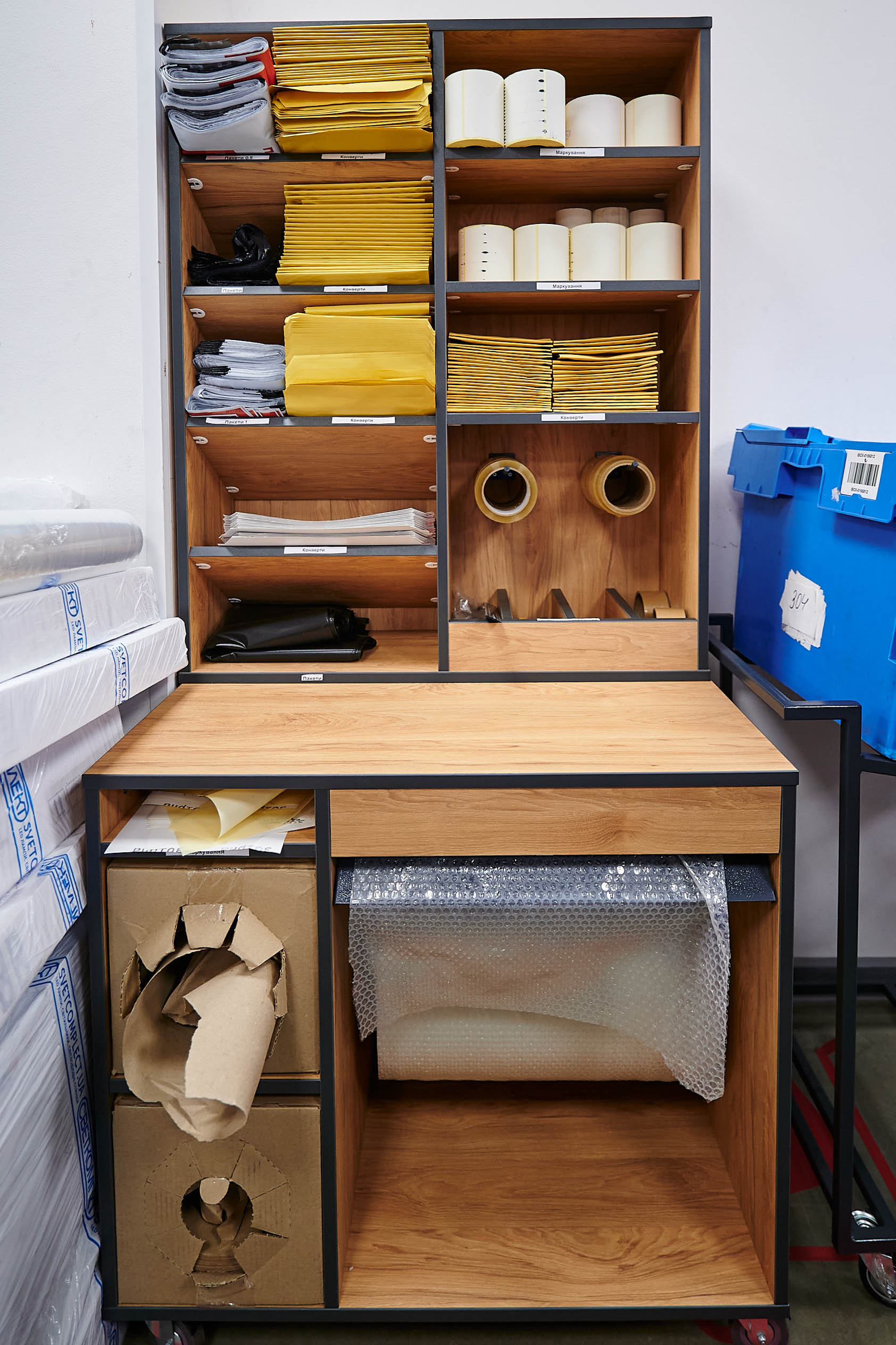 Организована зона самостоятельной упаковки и отправки посылок. Теперь наиболее опытные клиенты, например, предприниматели, могут экономить время, выполняя часть операций самостоятельно.