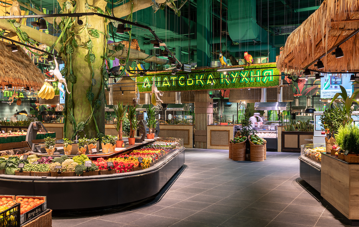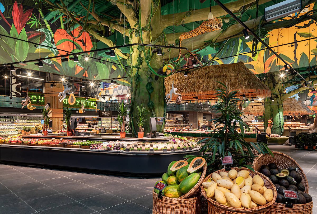 Шоппинг в супермаркете напоминает путешествие по Бразилии. Начинается оно в джунглях Амазонии из отдела фруктов и овощей, где кроме экзотики гости найдут уже такие знакомые и любимые продукты от украинских фермеров.