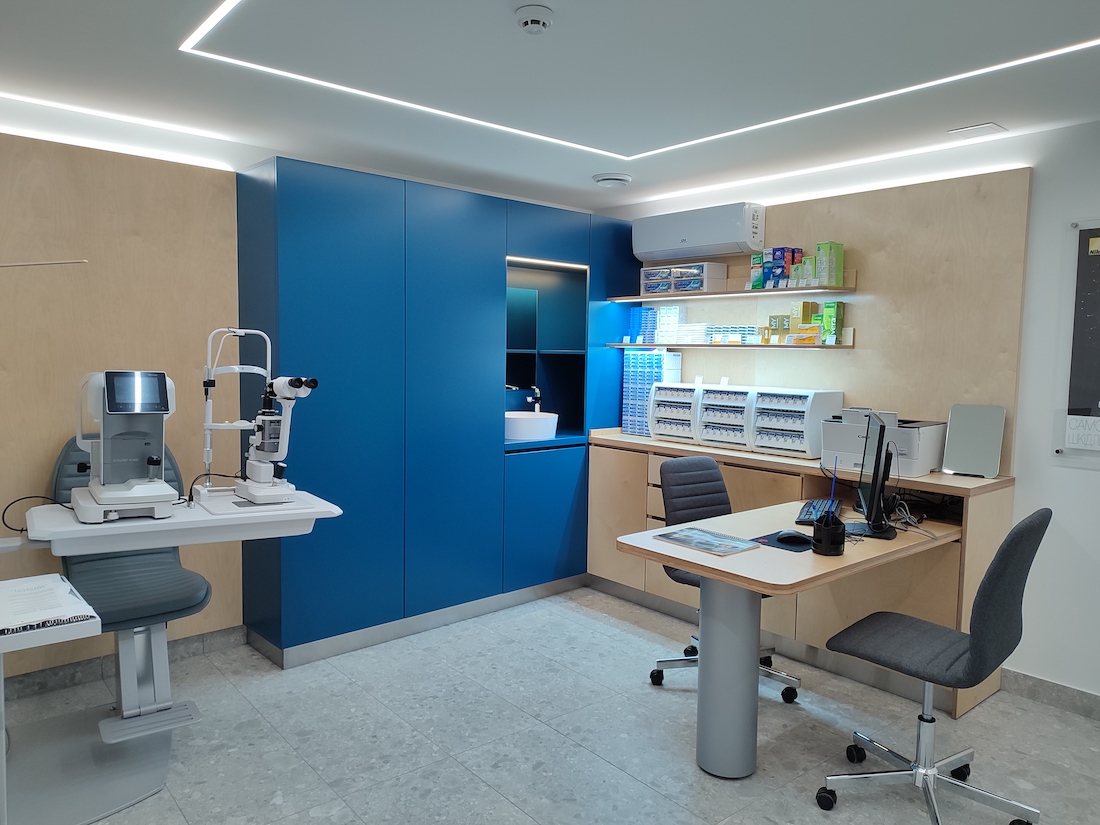 2 затишних кабінети офтальмолога розташовано на другому поверсі. Записатися на перевірку зору до "Люксоптик" можна на онлайн офіційному сайті.