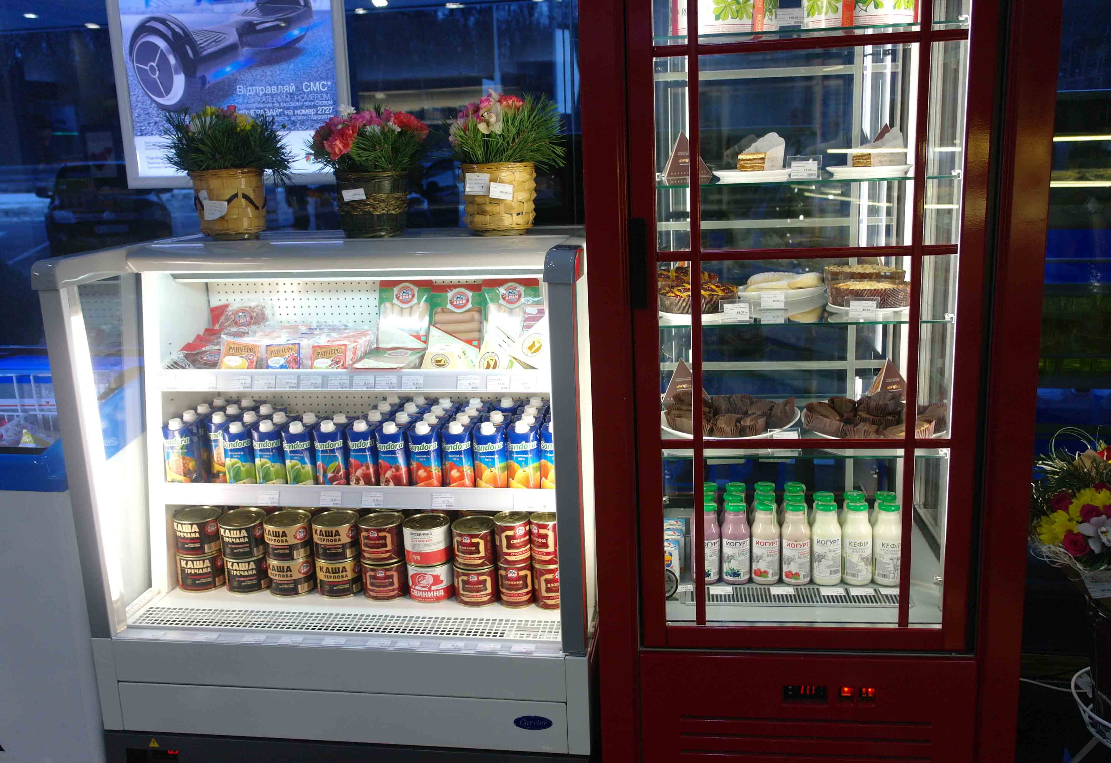 В продуктовом магазине есть молочный ассортимент, кондитерские изделия, колбасы и сосиски.