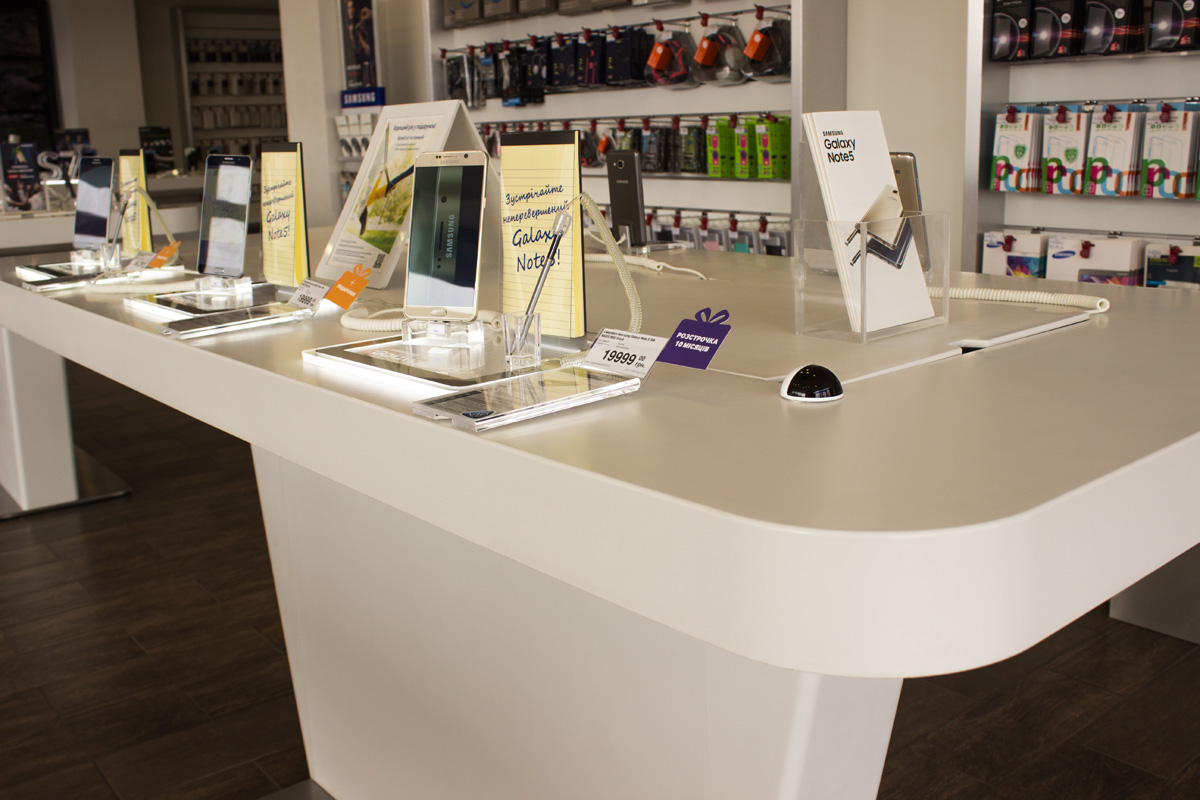 Концепт разрабатывался непосредственно корпорацией SAMSUNG с учетом пожеланий компании «Протория» (входит в МТІ) к открытию магазина в июне 2013 года.