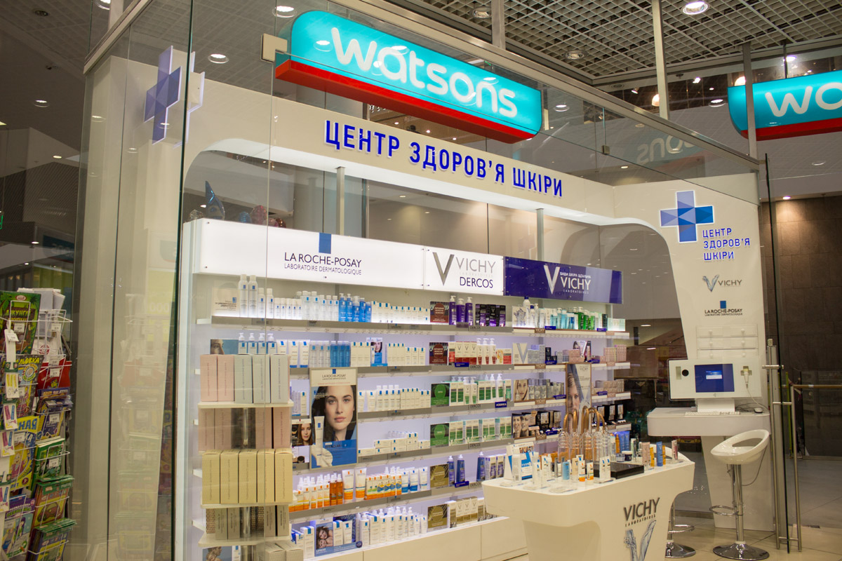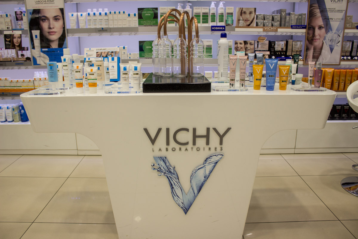 Главная особенность магазина — дермозона, в которой ежедневно принимает косметолог. Здесь можно проанализировать состояние кожи и подобрать косметику для ухода брендов Vichy, La Roche-Posay и других торговых марок.