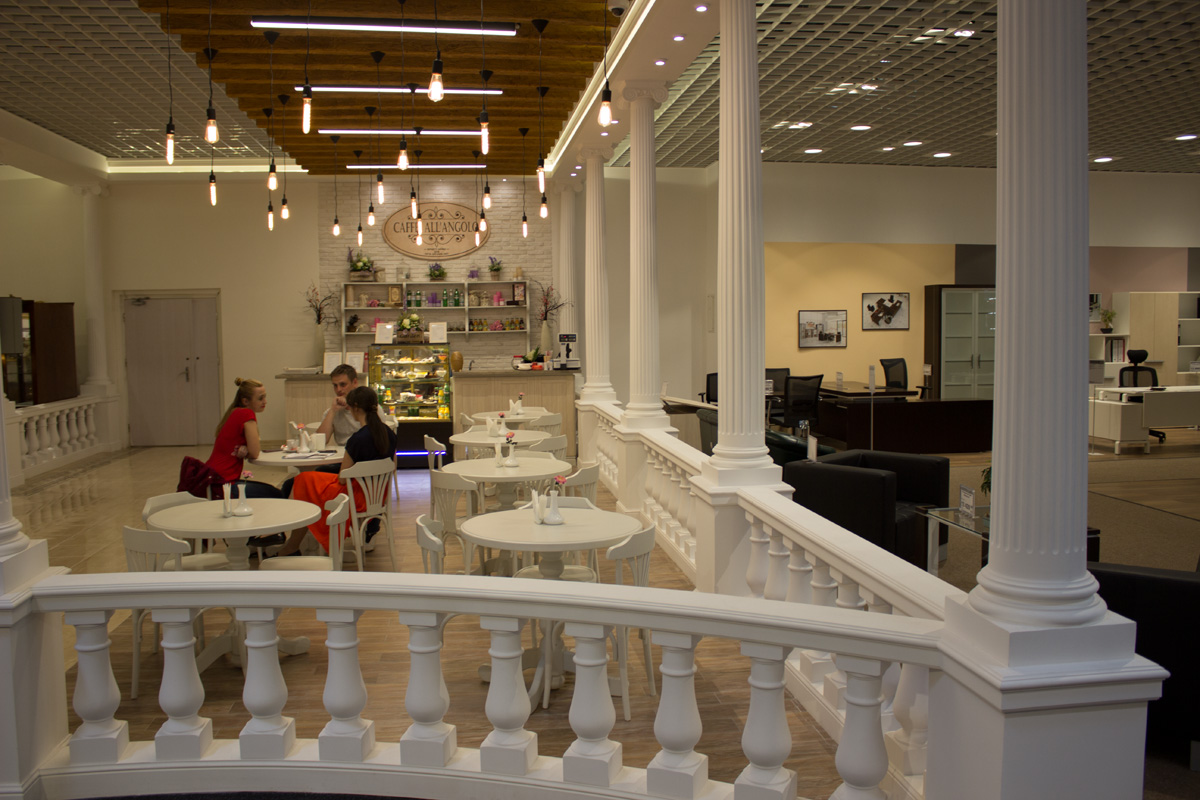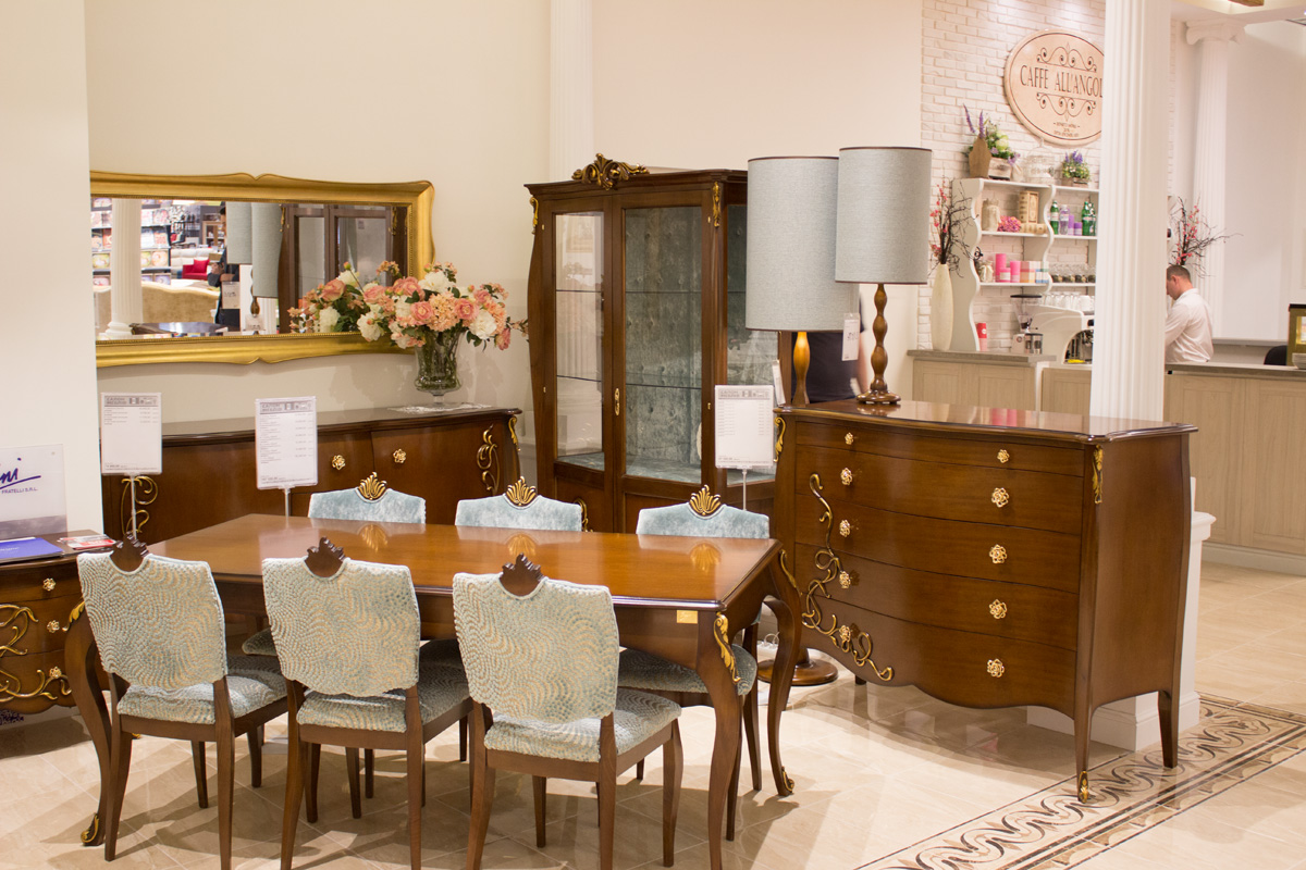 Кафе в итальянском стиле находится рядом с отделом итальянской мебели.