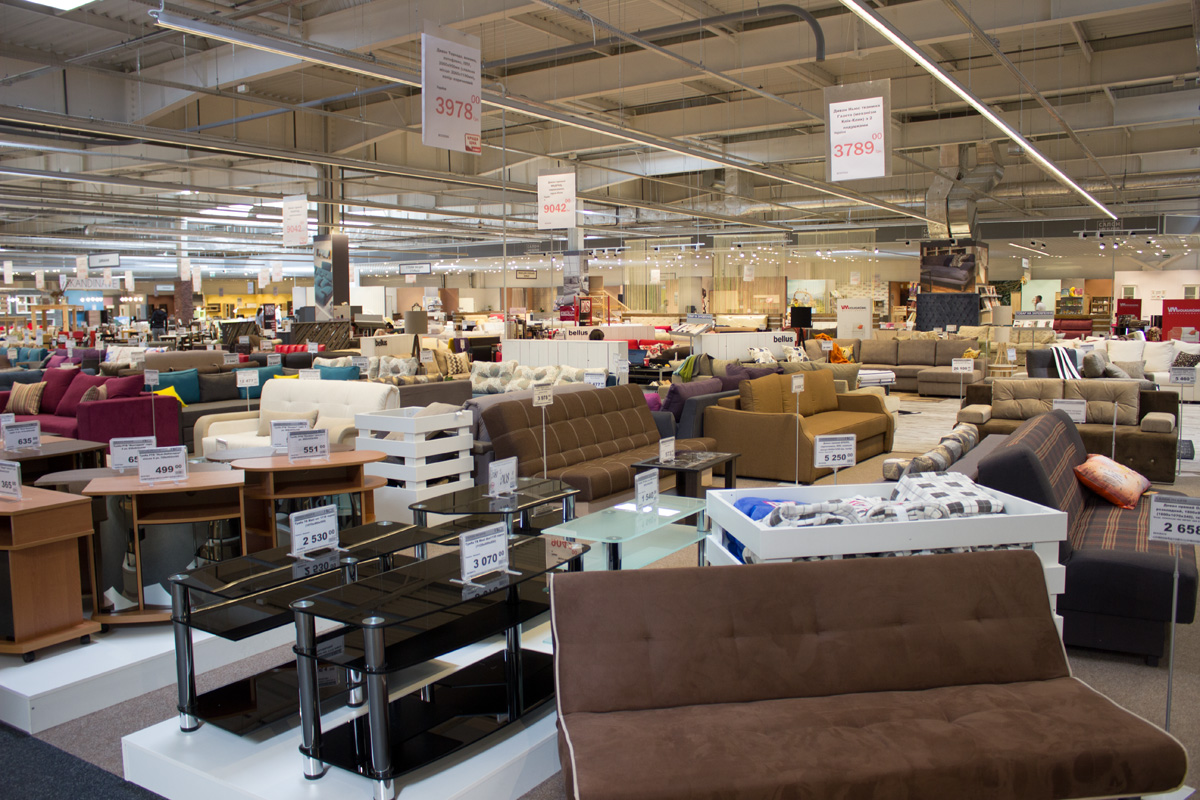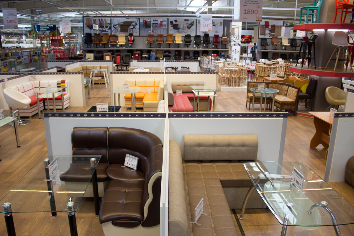 Большая торговая площадь позволяет «Эпицентру» выставить много мебели.