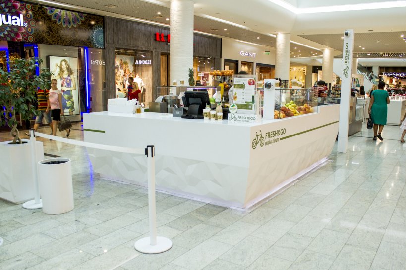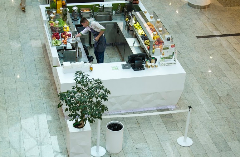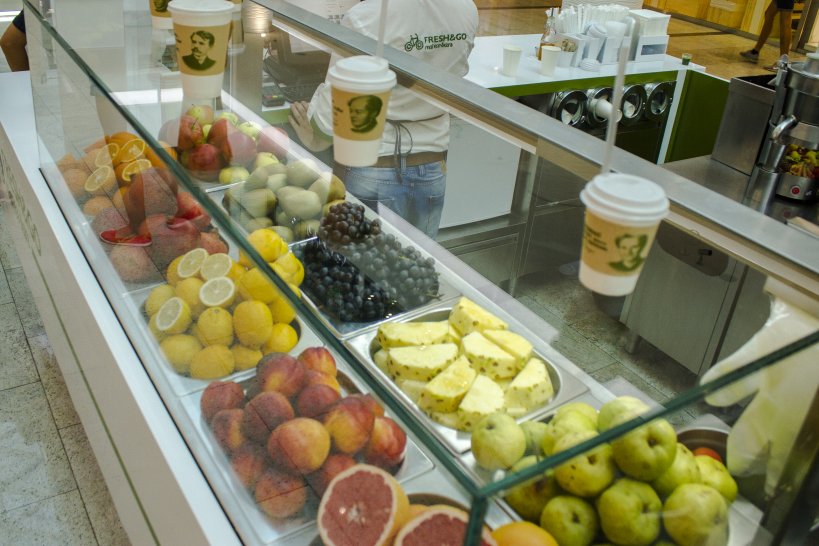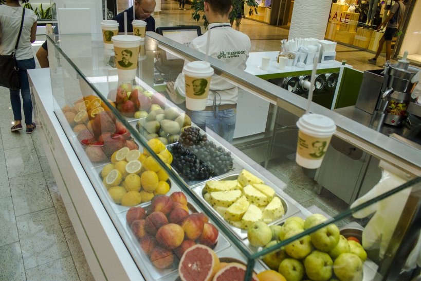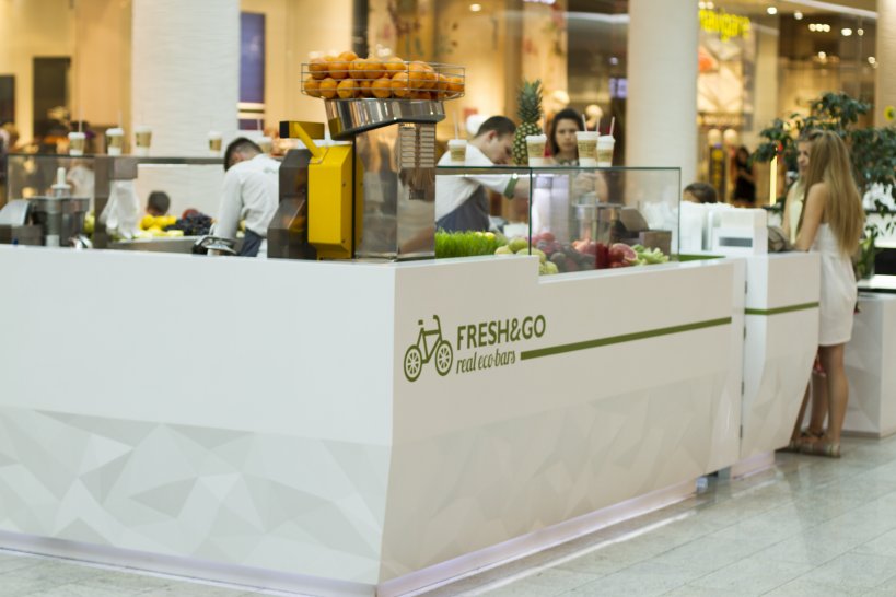 Первый экобар FRESH&GO открылся в Киеве четыре года назад. Сегодня торговые точки, где делают свежевыжатые фреши, располагаются в торговых центрах Ocean Plaza, «Пирамида» и «РайON». Четвертый объект сети откроется в киевском ЦУМе, это будет новый формат, который объединит экобар и магазин.