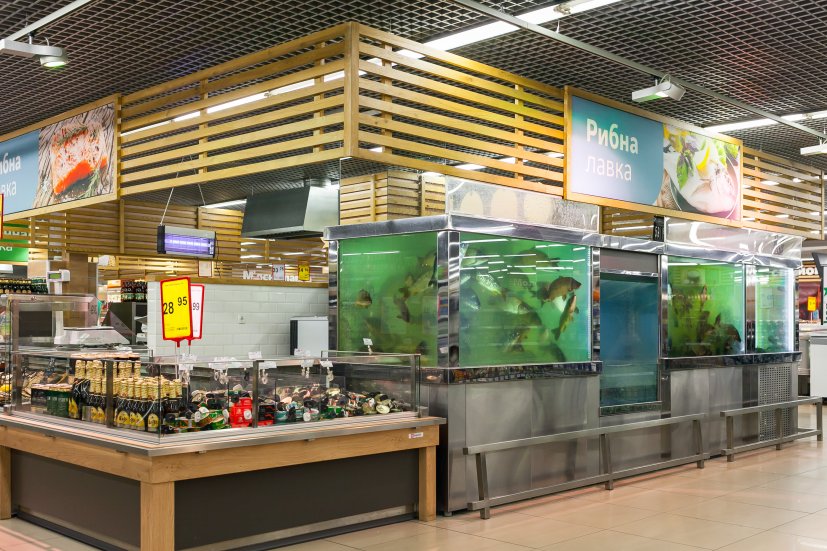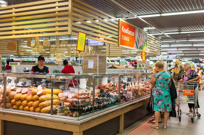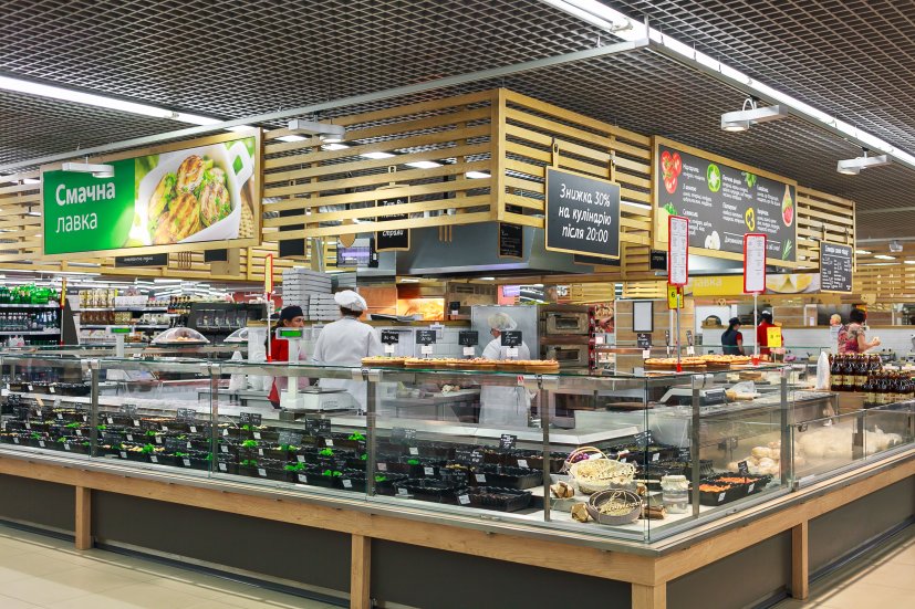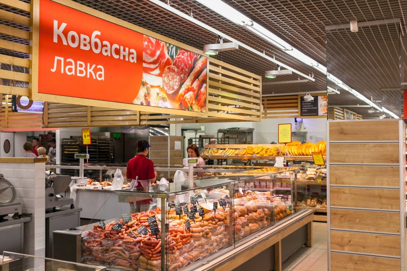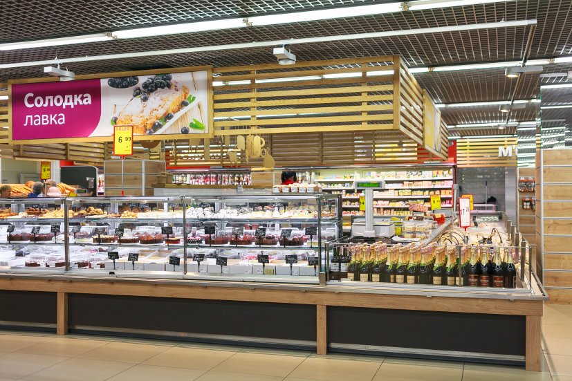 В этом супермаркете отделы носят название «лавки». В торговом зале можно увидеть вывески «Колбасная лавка», «Сладкая лавка», «Вкусная лавка».