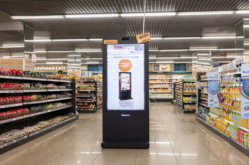 С недавнего времени в «ЭКО маркете» появился интерактивный touch-дисплей, который показывает актуальную информацию о текущих акционных предложениях в сети.