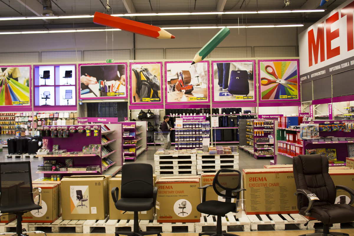 Еще один концептуальный отдел в METRO — это «Офис», где продаются канцтовары.