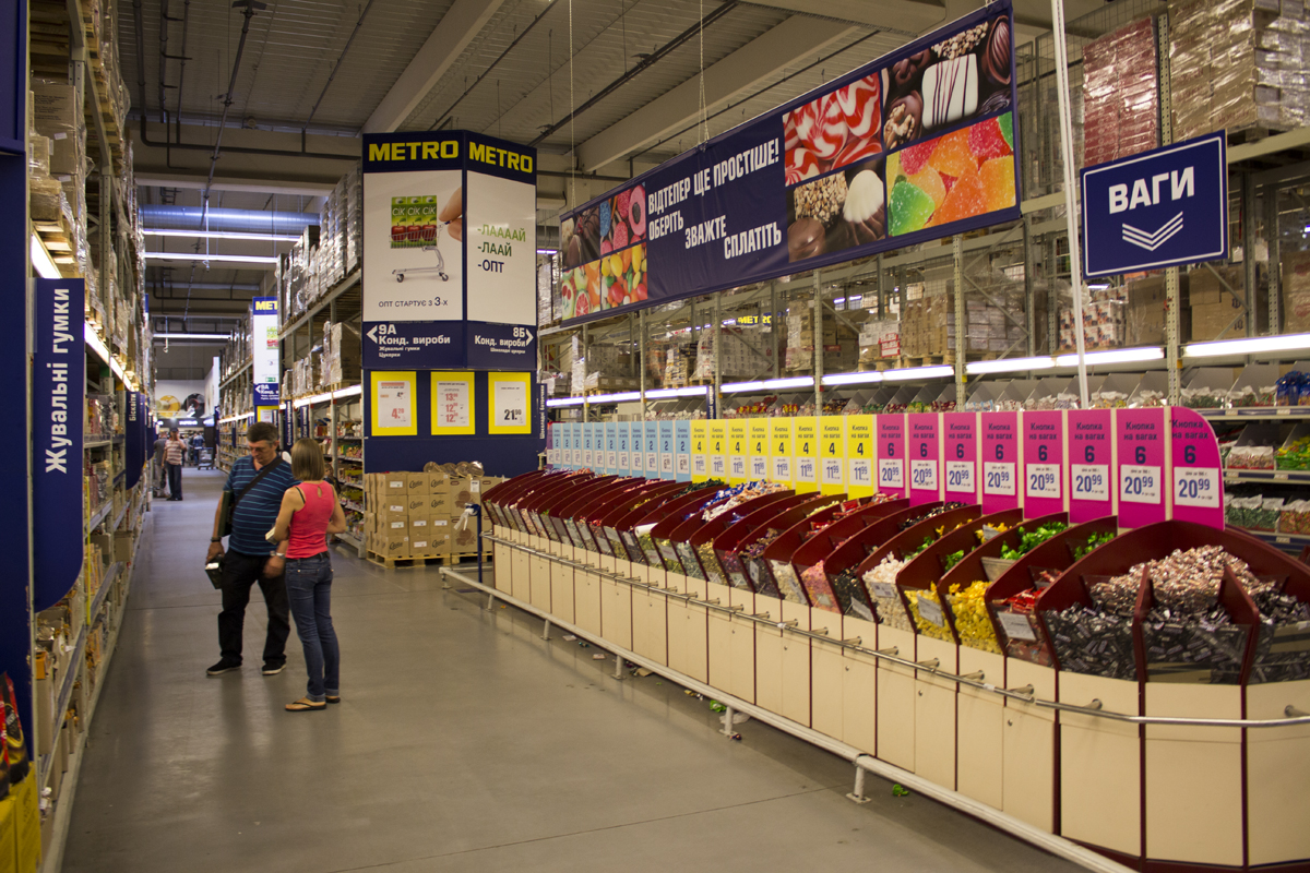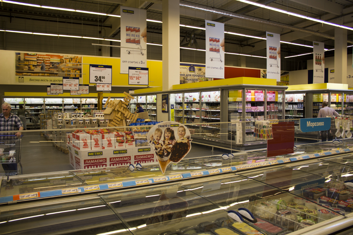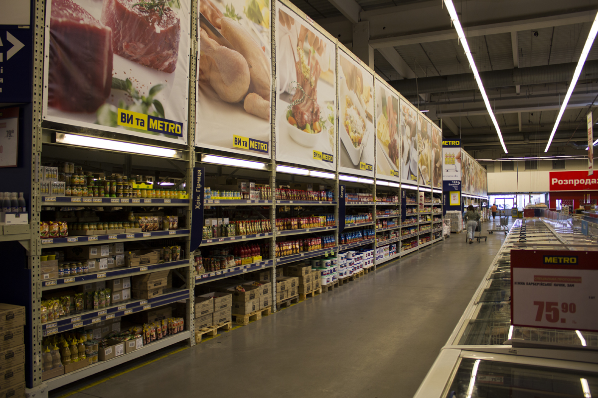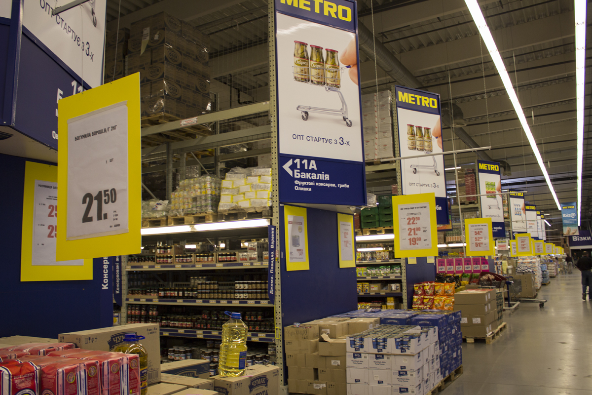 Раз в неделю наша редакция выбирает интересный магазин c точки зрения дизайна и ритейл-концепции и фотографирует его. На этой неделе — гипермаркет Metro C&C в Киеве на проспекте Григоренко