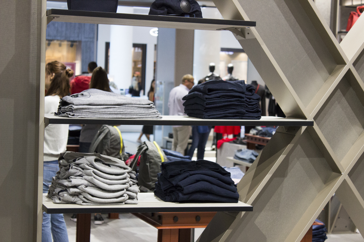 Ассортимент товаров включает в себя мужскую и женскую одежду, обувь и аксессуары.