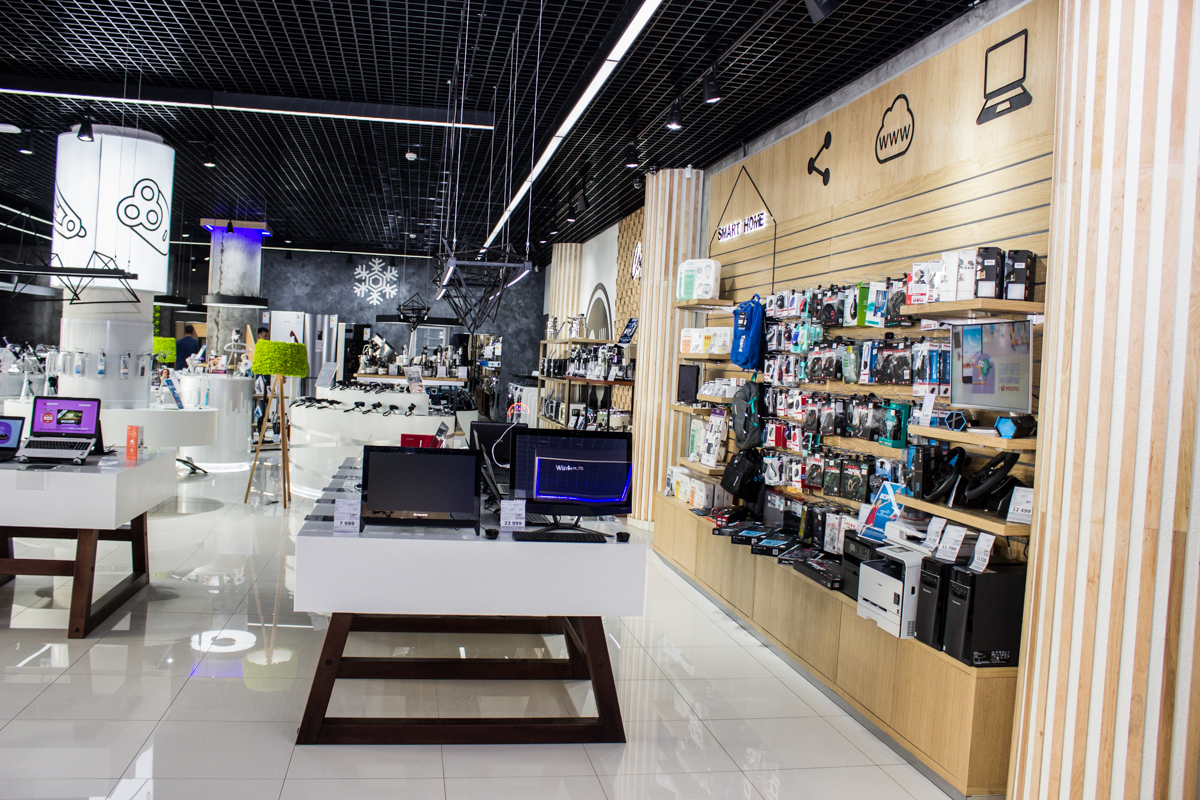 Акцент в товарном ассортименте сделан на инновационные гаджеты.