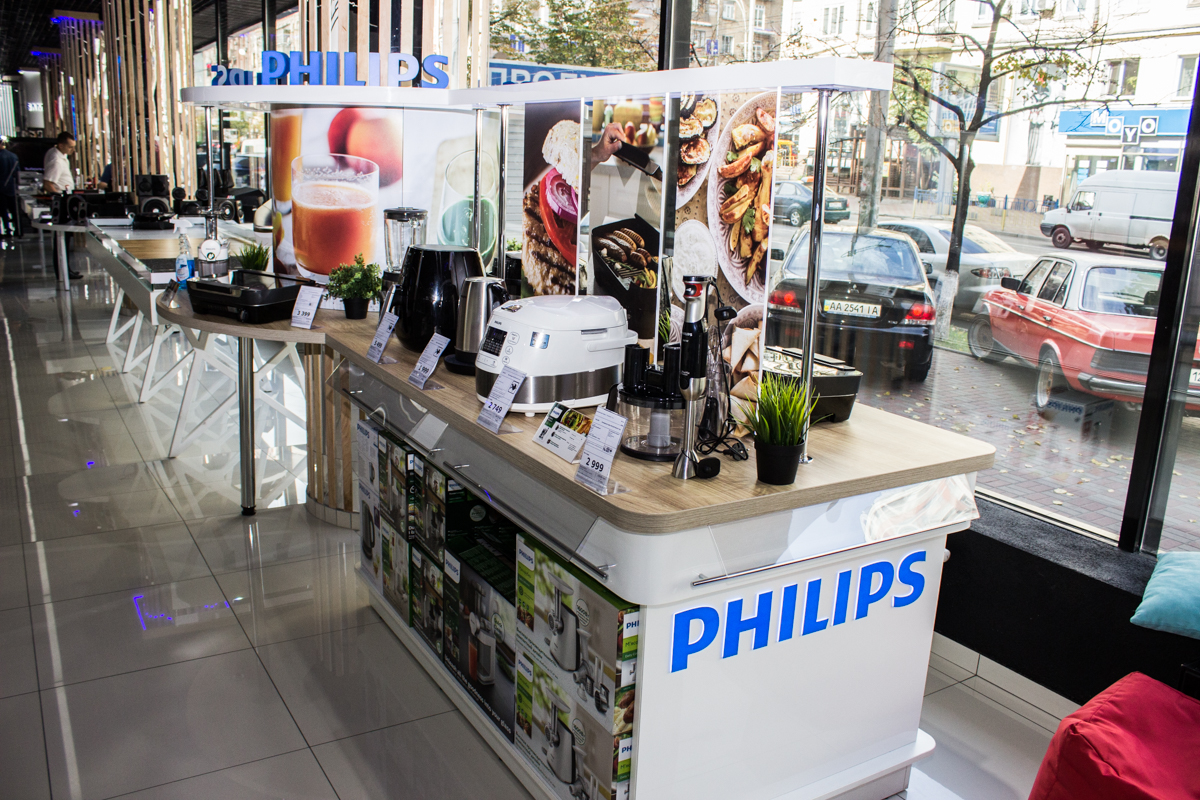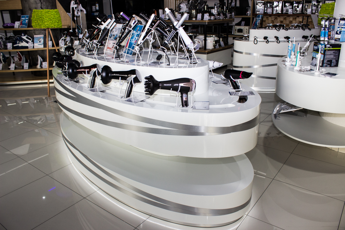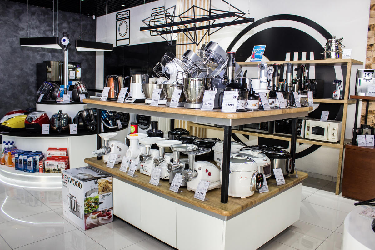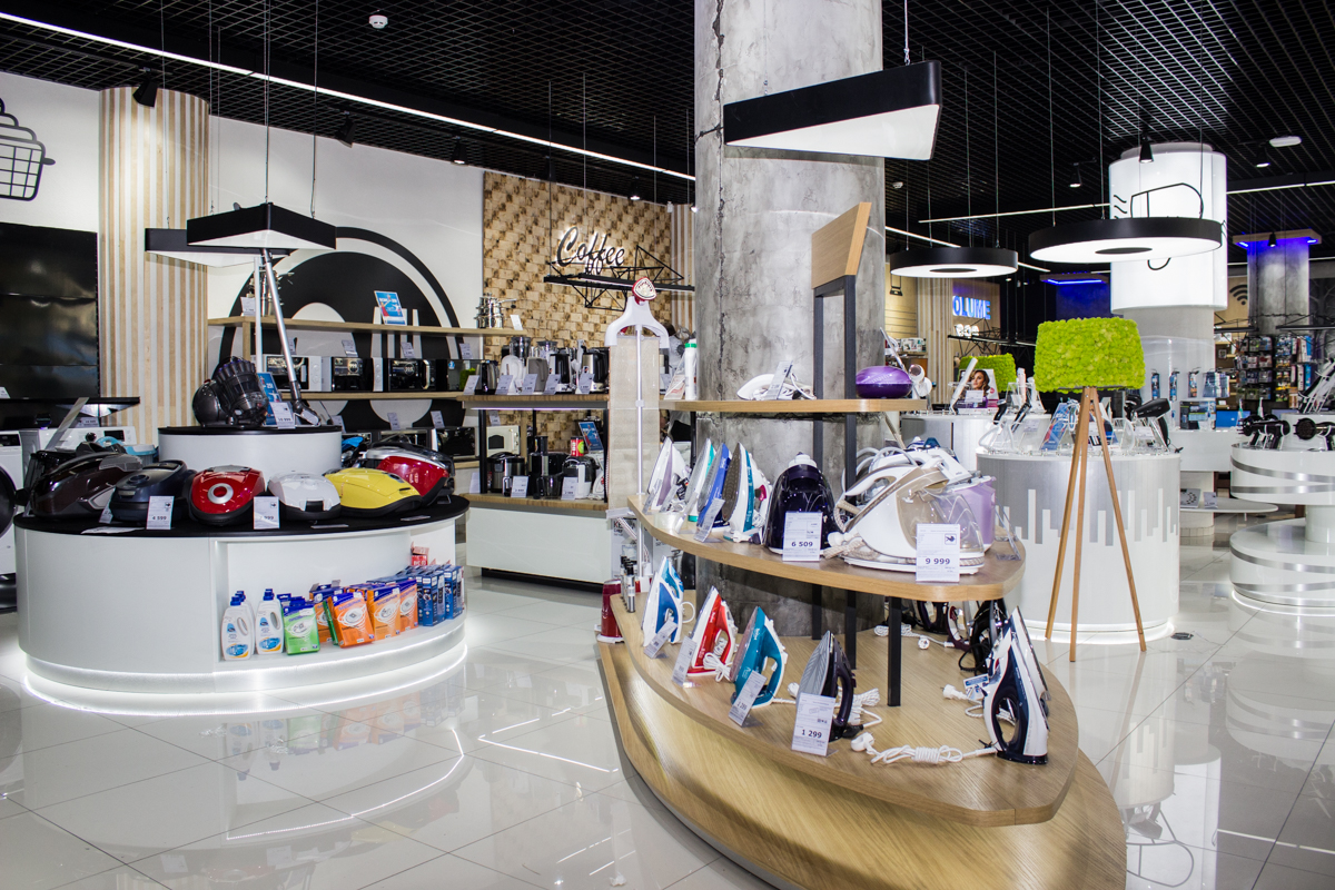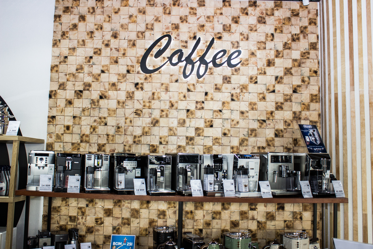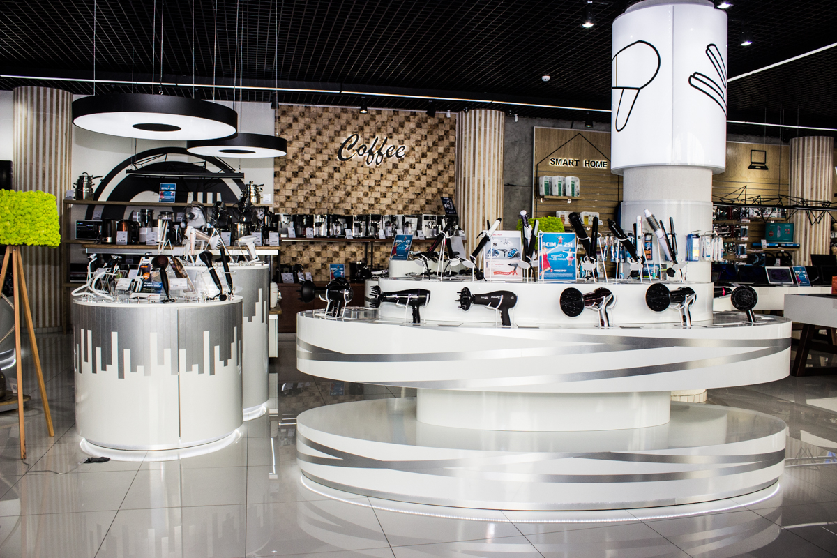 Мир гаджетов дополнен пространством с бытовой техникой — работают зоны «Кофе» и сектора с мелкой бытовой техникой.