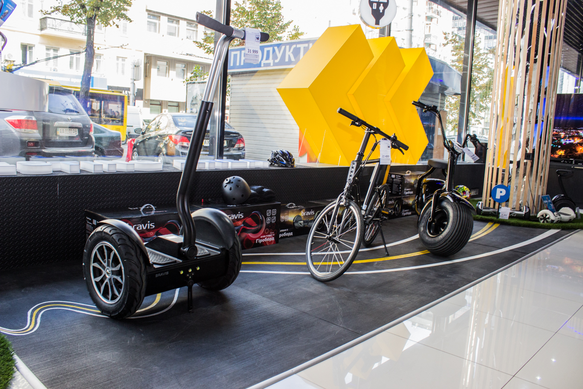 В своей зоне собраны квадрокоптеры и игрушки-роботы. Отдельно представлена вся линейка электротранспорта от собственной торговой марки «Фокстрота» — ТМ BRAVIS со специально обустроенной дорожкой для тестирования гироскутеров и мини-байков.