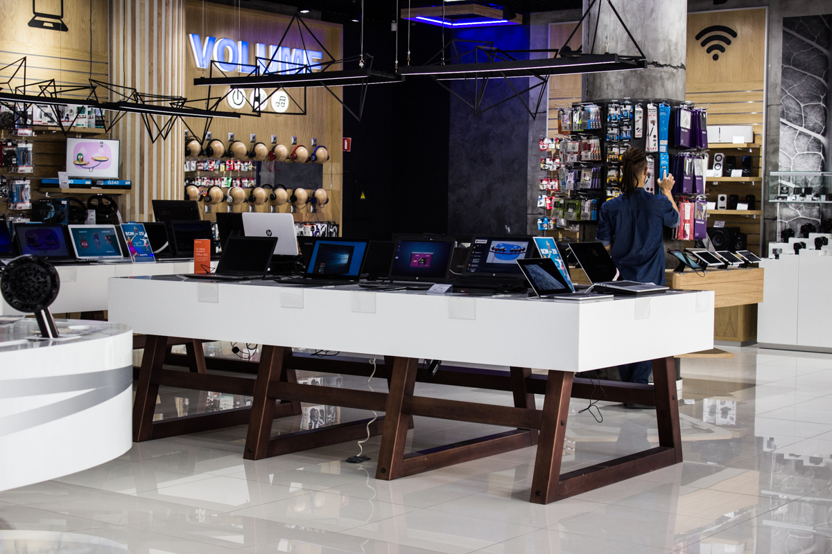 Раз в неделю наша редакция выбирает интересный магазин c точки зрения дизайна и ритейл-концепции и фотографирует его. На этой неделе — магазин торговой сети «Фокстрот» в магазине Show Store, который открылся на ул. Большой Васильковской, 45