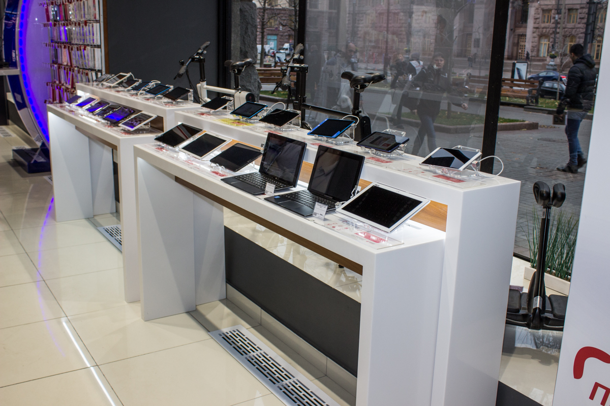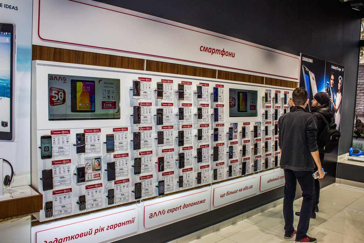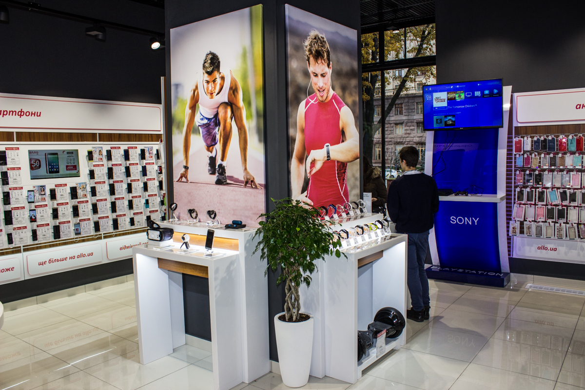 Раз в неделю наша редакция выбирает интересный магазин c точки зрения дизайна и ритейл-концепции и фотографирует его. На этой неделе — «Алло» на Крещатике