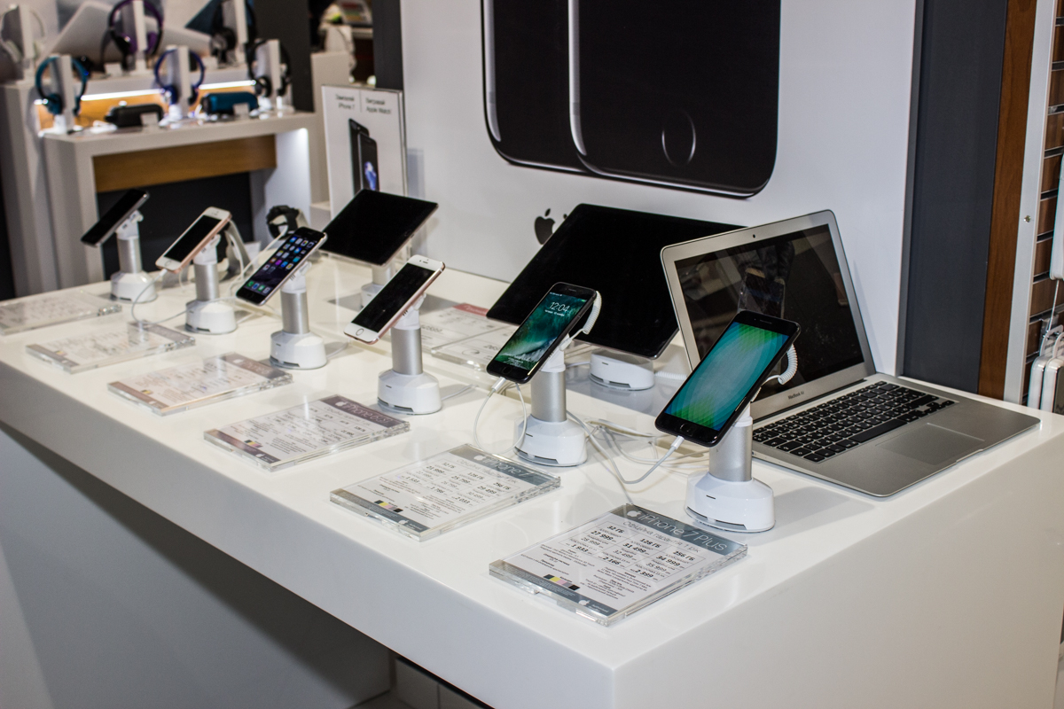 Смартфоны и аксессуары остаются самой продаваемой категорией в «Алло», под них выделена отдельная стойка.