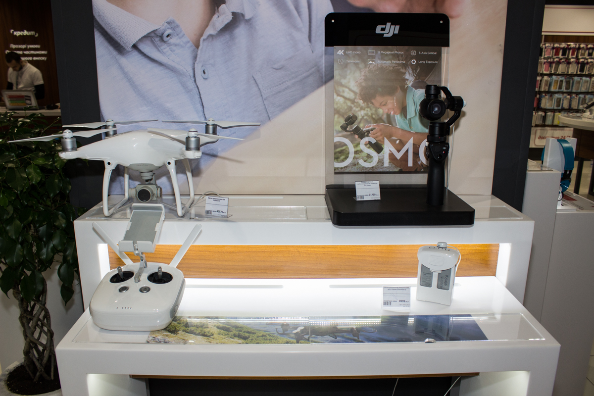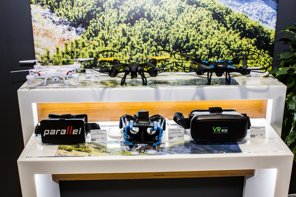 В новом магазине представлены гироскутеры, квадрокоптеры.