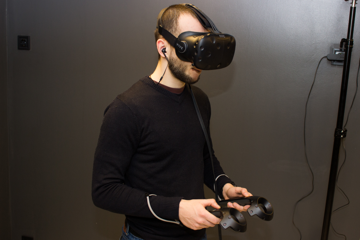 Еще одна обособленная зона с квадракоптерами и очками виртуальной реальности.