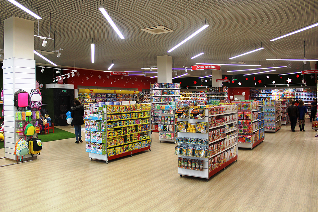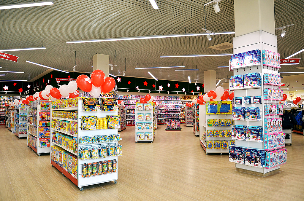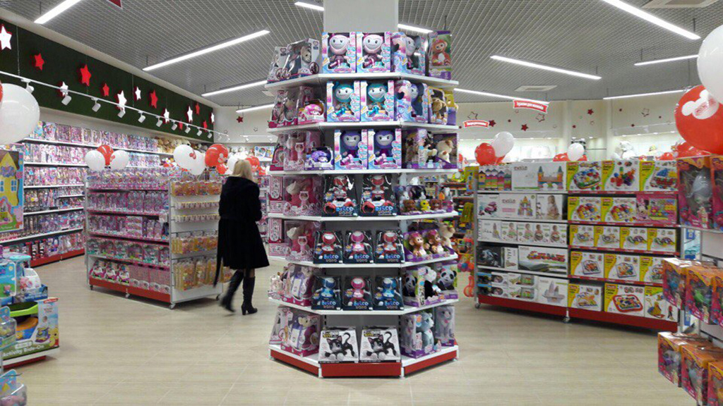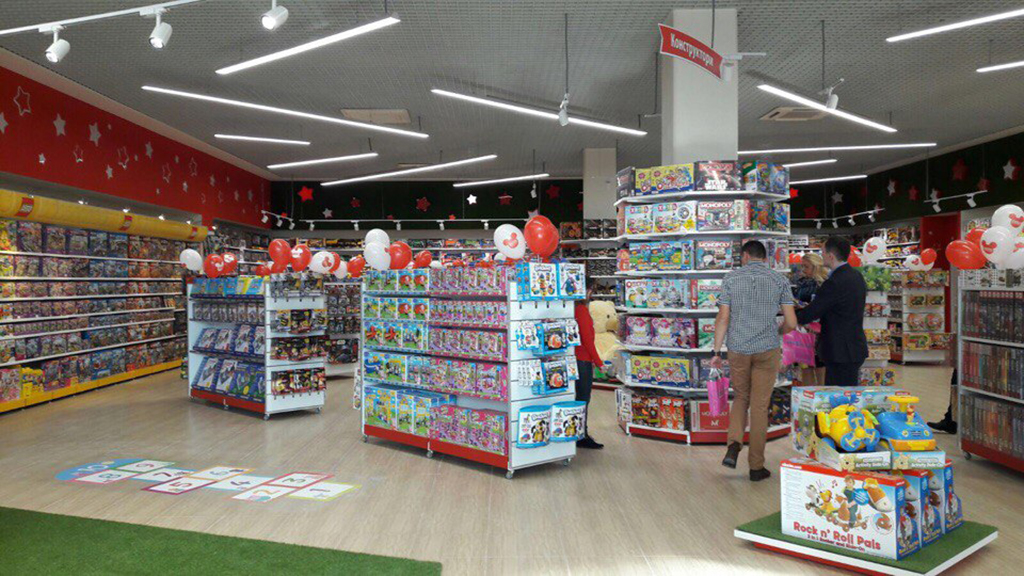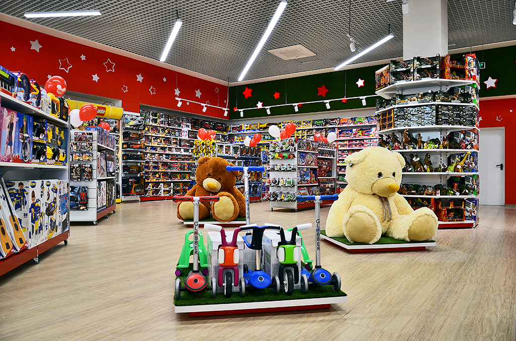 В ассортименте более 20 000 SKU: развивающие игрушки для всех возрастных категорий, предметы для активного отдыха, наборы для творчества, коляски, кровати, детская одежда и обувь, средства по уходу за ребенком, а также предметы гигиены.