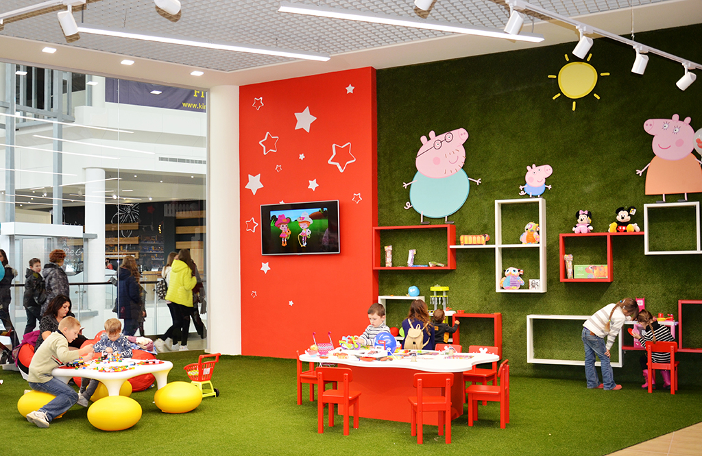 В этом MIKKI расположена игровая зона, в которой можно поиграть, протестировать игрушки и посмотреть мультфильм.