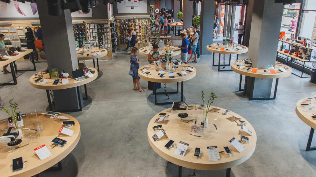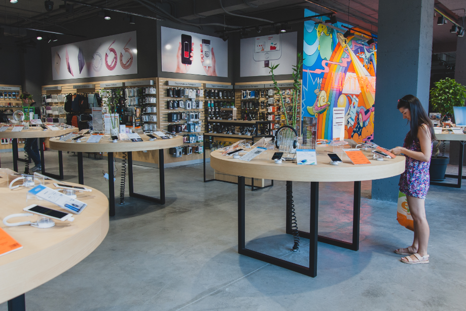 Концепция магазина — это пространство для знакомства людей с новинками в мире гаджетов. Именно так его представляет себе компания. В этом магазине можно испытывать разные гаджеты, получить детальные консультации, можно обучаться, играть или просто отдохнуть, выпить кофе и початиться в интернете. Это магазин не только для покупки, но и для того, чтобы процесс покупки приносил удовольствие.
